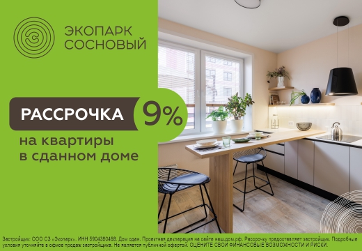 Квартира в сданном ЖК Экопарк Сосновый в рассрочку 9%!