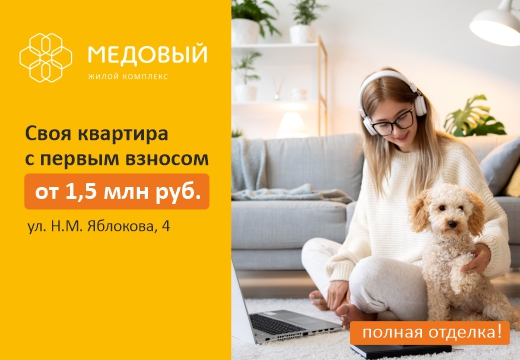 Своя квартира в жилом комплексе «Медовый» теперь доступна с первым взносом от 1,5 млн рублей. Просторная светлая гостиная, место для работы и отдыха, много зелени и уюта — все для комфортной жизни в уже обжитом районе.