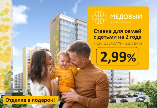 Купить квартиру в сданном доме стало проще благодаря специальной акции! Ставка 2,99% для семей с детьми! Отделка в подарок!