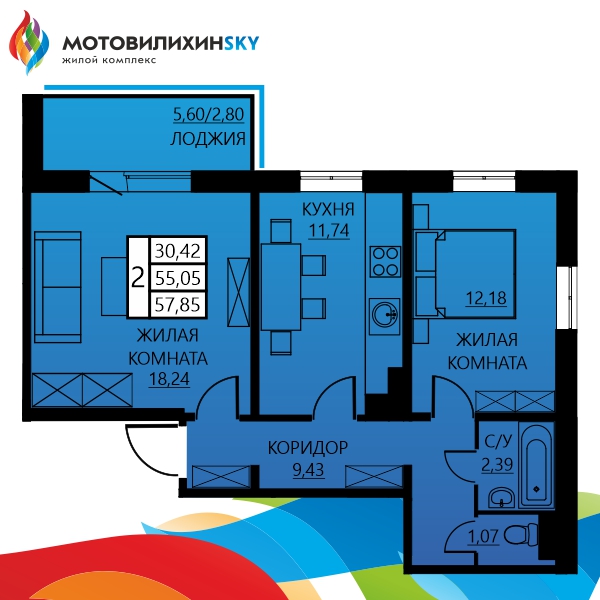 Двухкомнатная Гашкова, 55 - Квартира №207