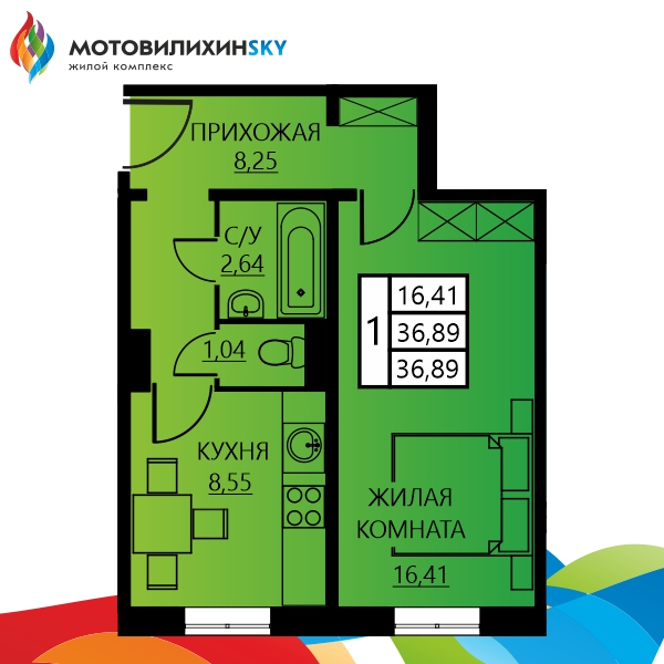 Однокомнатная Гашкова, 55 - Квартира №211