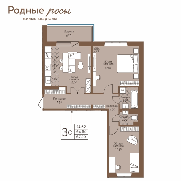 Евротрёхкомнатная Академическая, 11 - Квартира №262