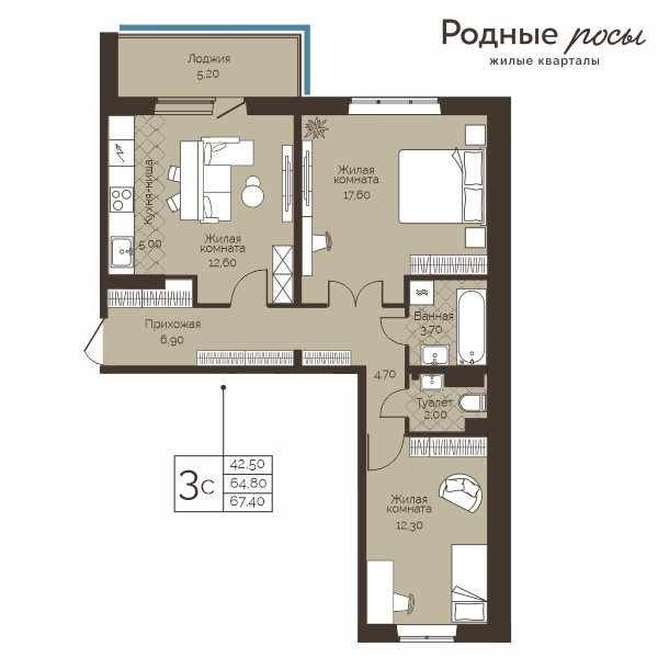 <div class=tooltip-content-finish><strong>Розетки</strong><span>30см от пола</span></div> <div class=tooltip-content-finish><strong>Стены</strong><span>экологичные виниловые обои нейтральных тонов</span></div> <div class=tooltip-content-finish><strong>Пололок</strong><span>натяжной матовый</span></div> <div class=tooltip-content-finish><strong>Межкомнатные двери</strong><span>ламинированные, царговые (с коробкой в комнатах - 96,5 см, в ванной и санузле-76,5 см)</span></div> <div class=tooltip-content-finish><strong>На полу</strong><span>линолеум на теплозвукоизоляционной подоснове. Плинтус с кабельканалом</span></div>