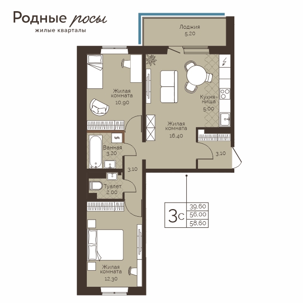58.6м2