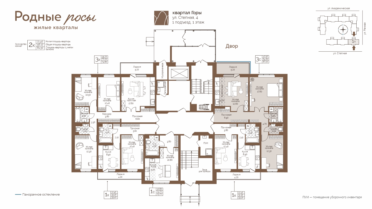 Евротрёхкомнатная Степная, 4, кв. 1
