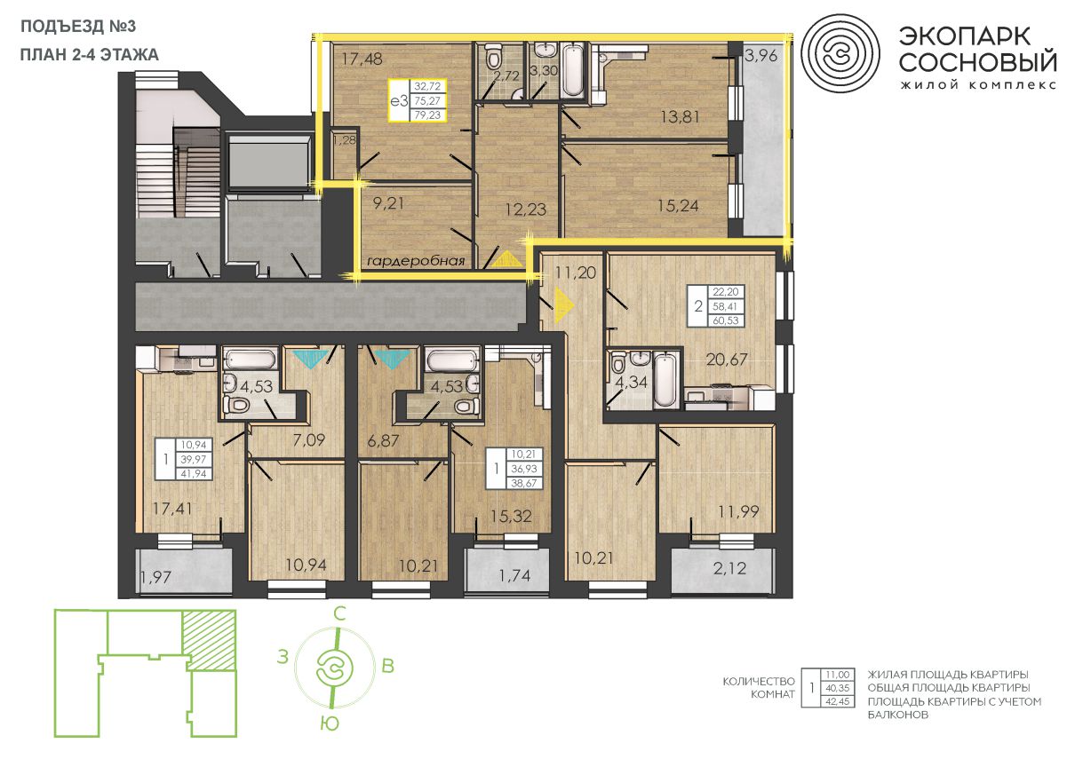 Евротрёхкомнатная Борцов Революции, 1А, корпус 4, кв. 57