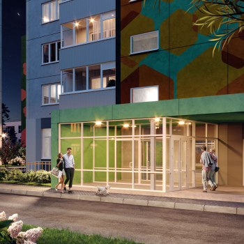 Входные группы выполнены в панорамном остеклении, что делает подъезды светлее и это позволит вам сэкономить коммунальных платежах за общедомовое имущество. Также это дополнительный уровень безопасности, так как вы всегда видите, что вас ожидает по ту сторону двери.