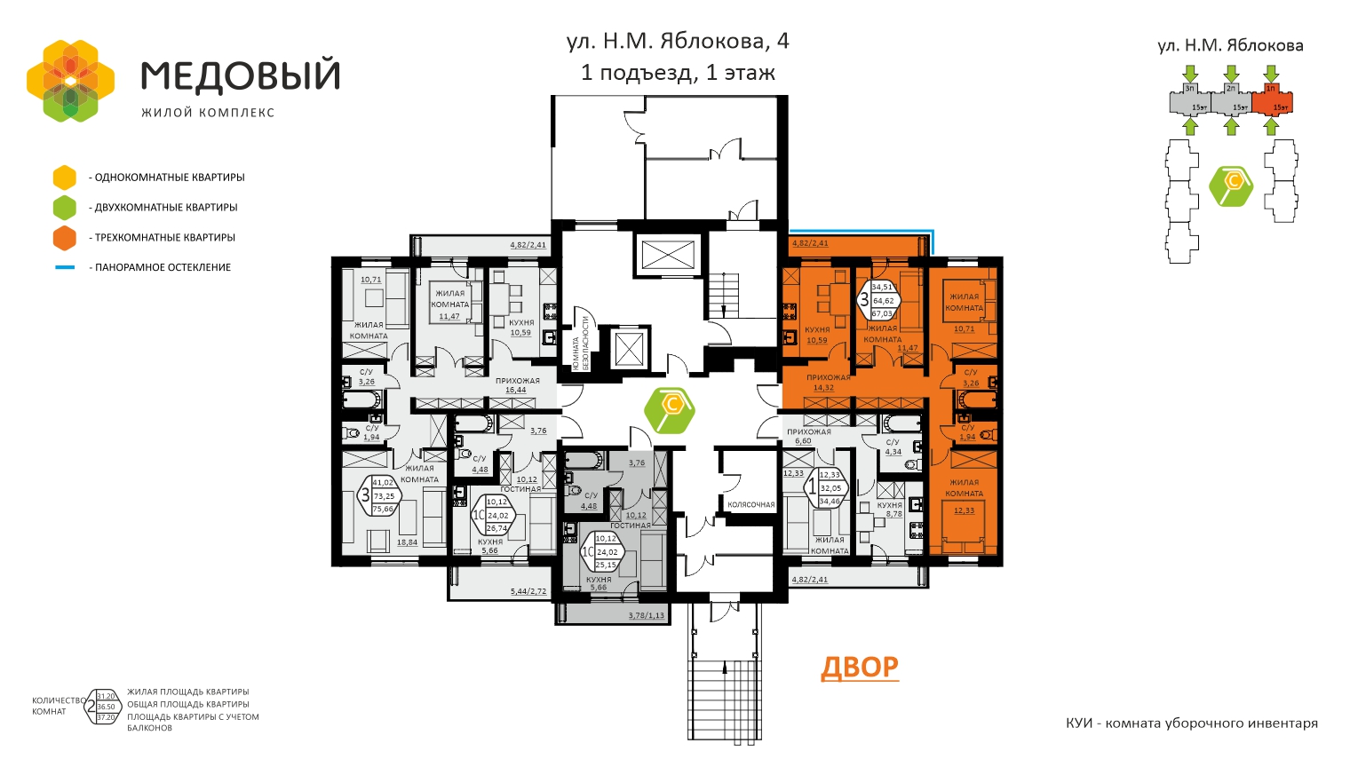 Трёхкомнатная Н.М. Яблокова, 4, кв. 1