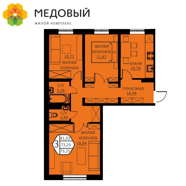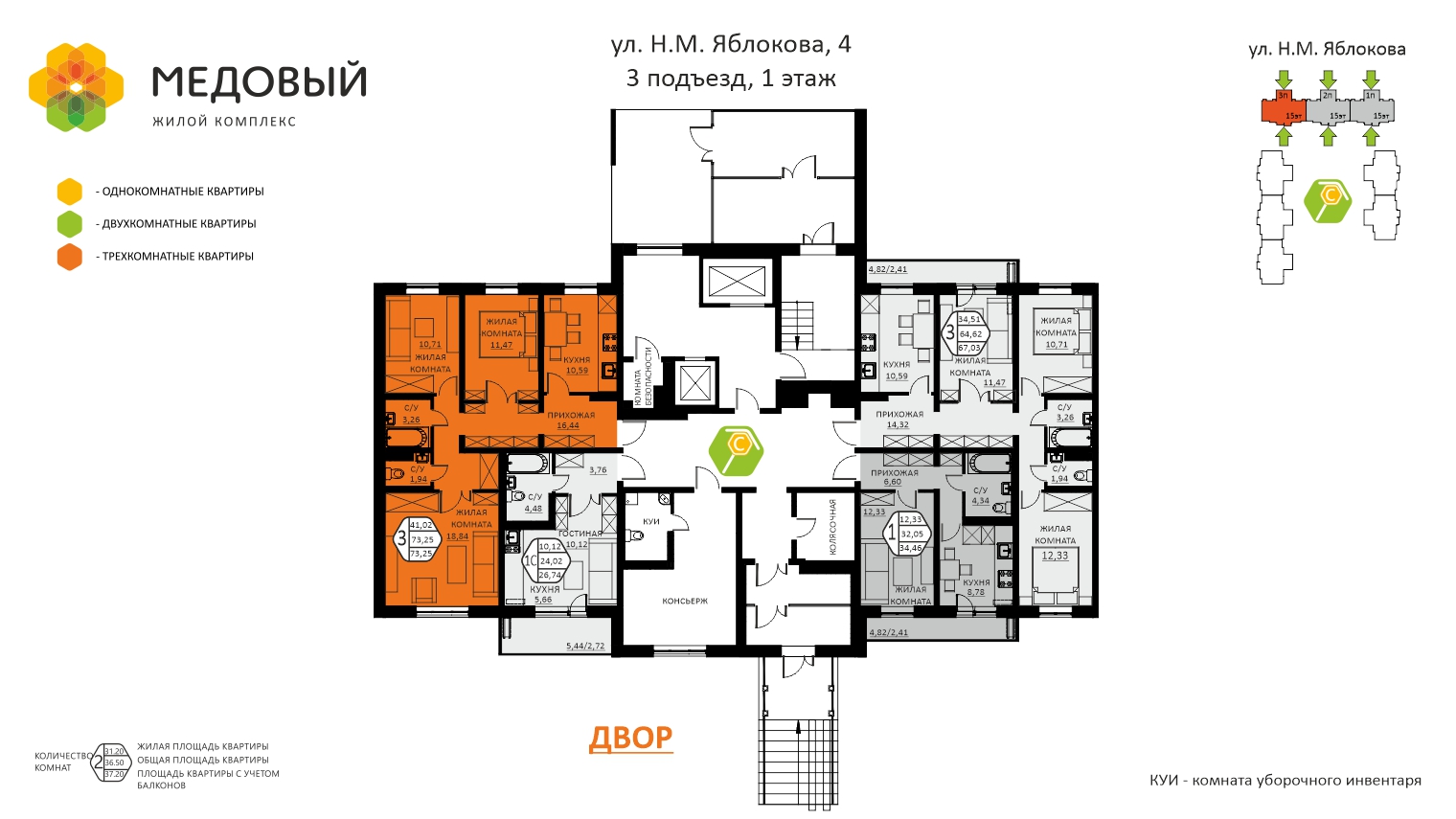 Трёхкомнатная Н.М. Яблокова, 4, кв. 182