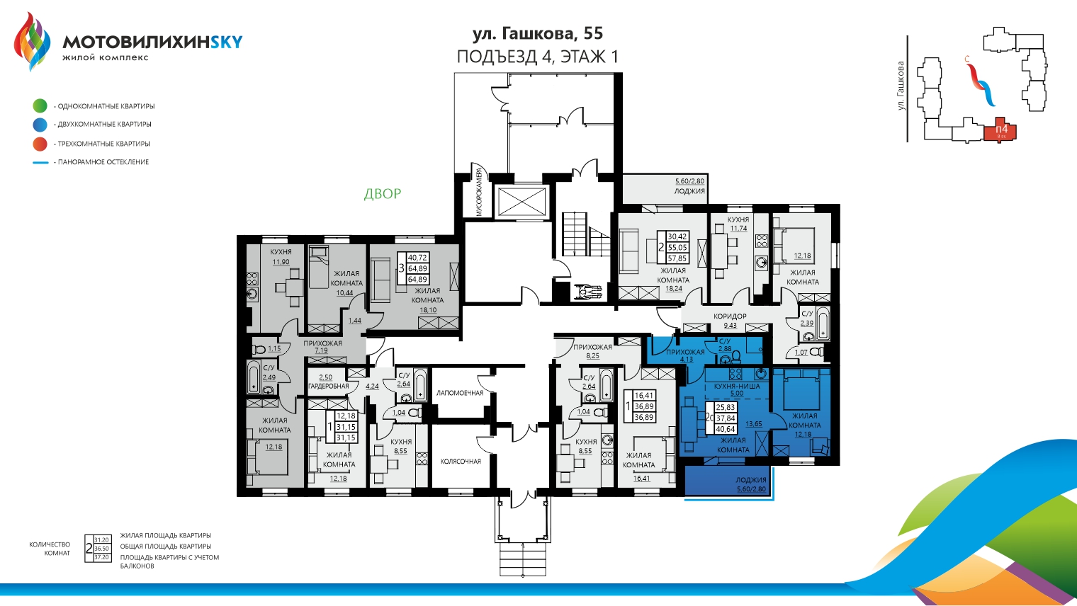 Евродвухкомнатная Гашкова, 55, кв. 191