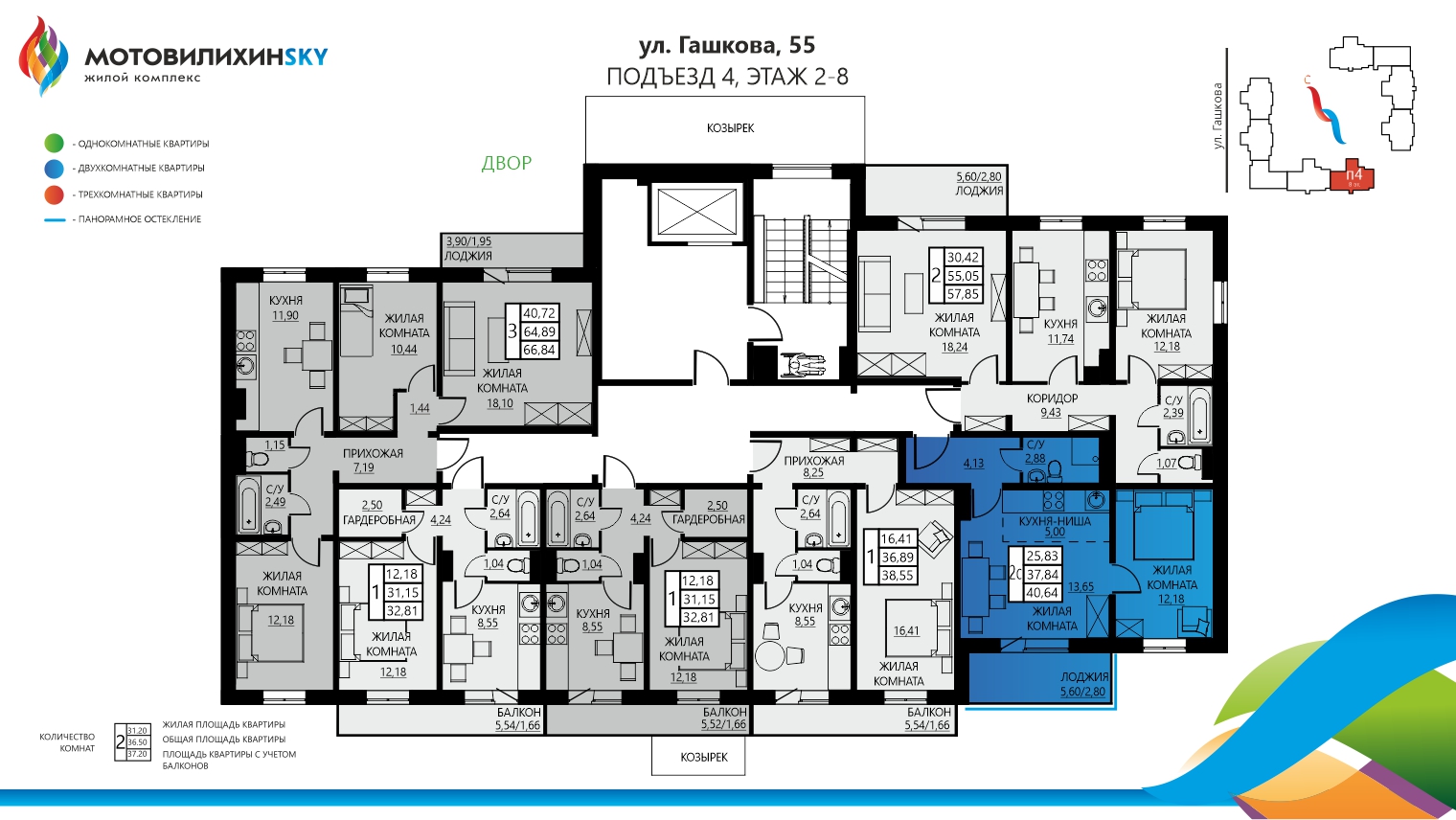Евродвухкомнатная Гашкова, 55, кв. 202