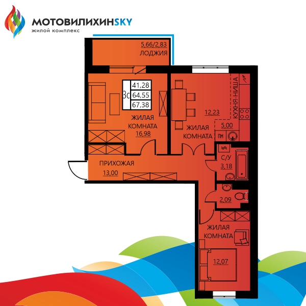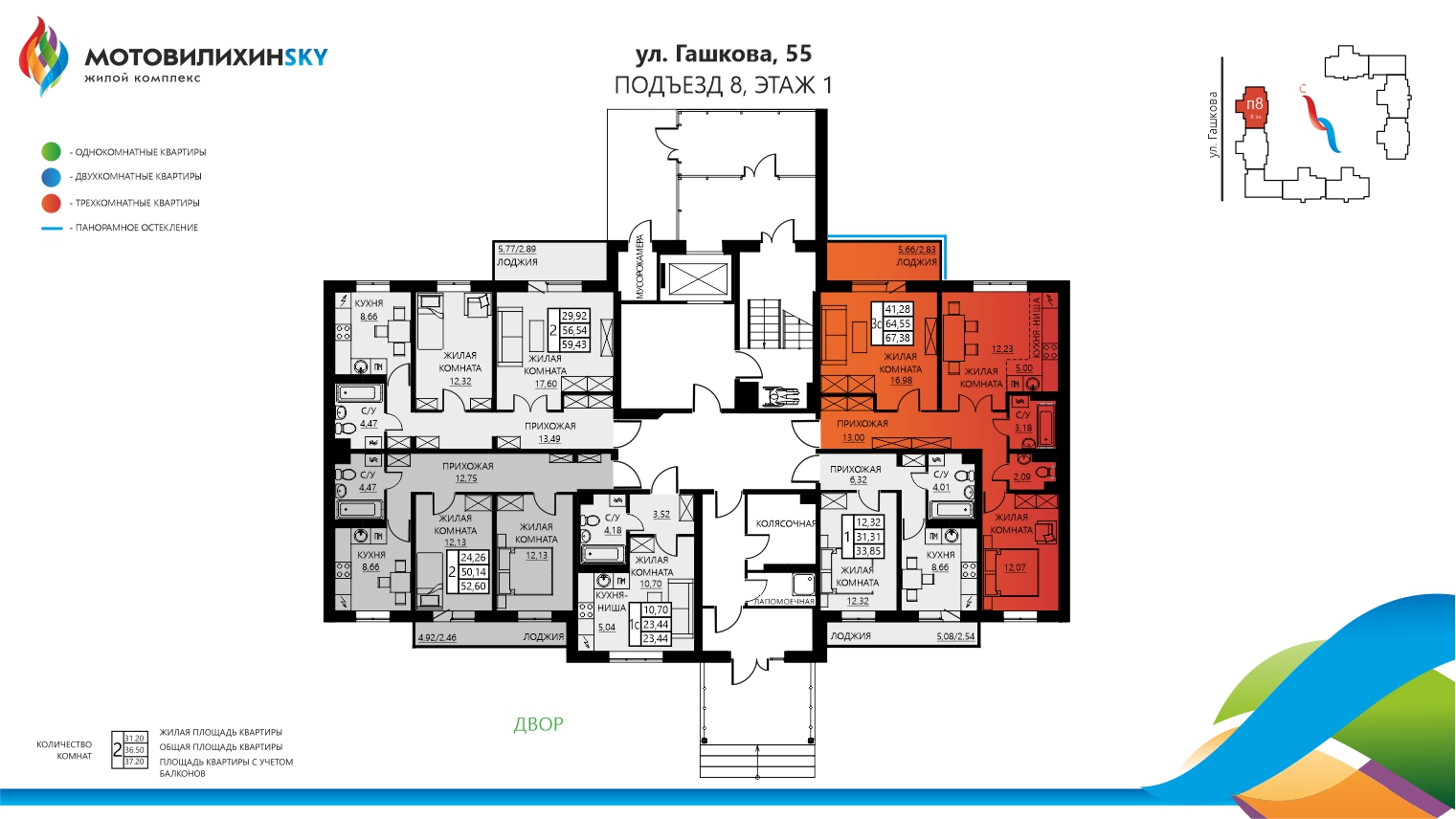 Евротрёхкомнатная Гашкова, 55, кв. 380