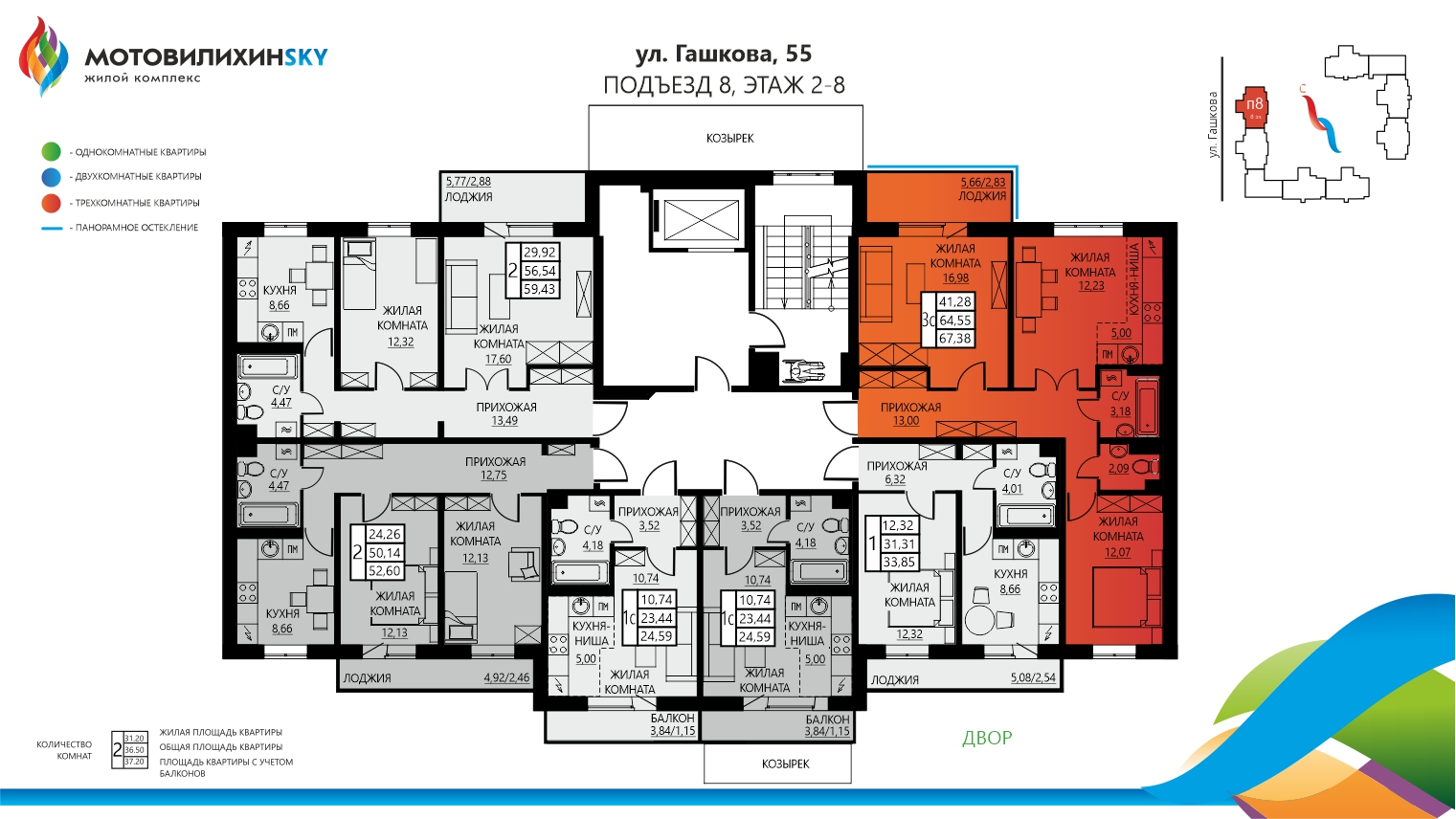 Евротрёхкомнатная Гашкова, 55, кв. 409