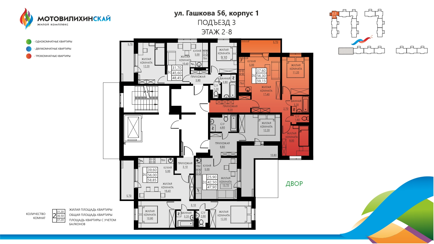 Евротрёхкомнатная Гашкова, 56, корпус 1, кв. 109