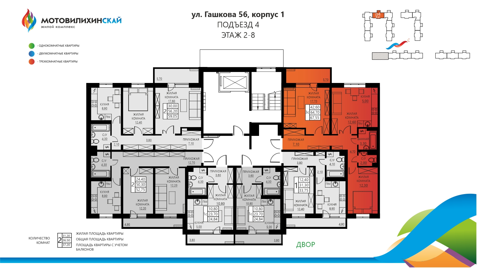 Евротрёхкомнатная Гашкова, 56, корпус 1, кв. 129
