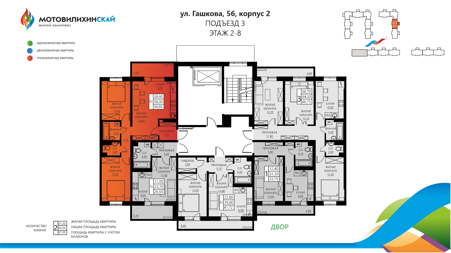 Евротрёхкомнатная Гашкова, 56, корпус 2, кв. 118