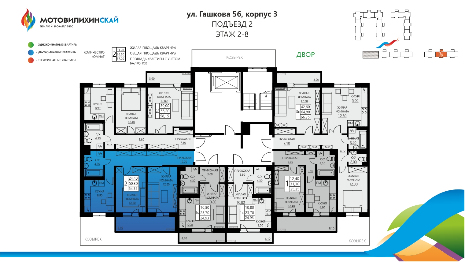 Двухкомнатная Гашкова, 56, корпус 3, кв. 83