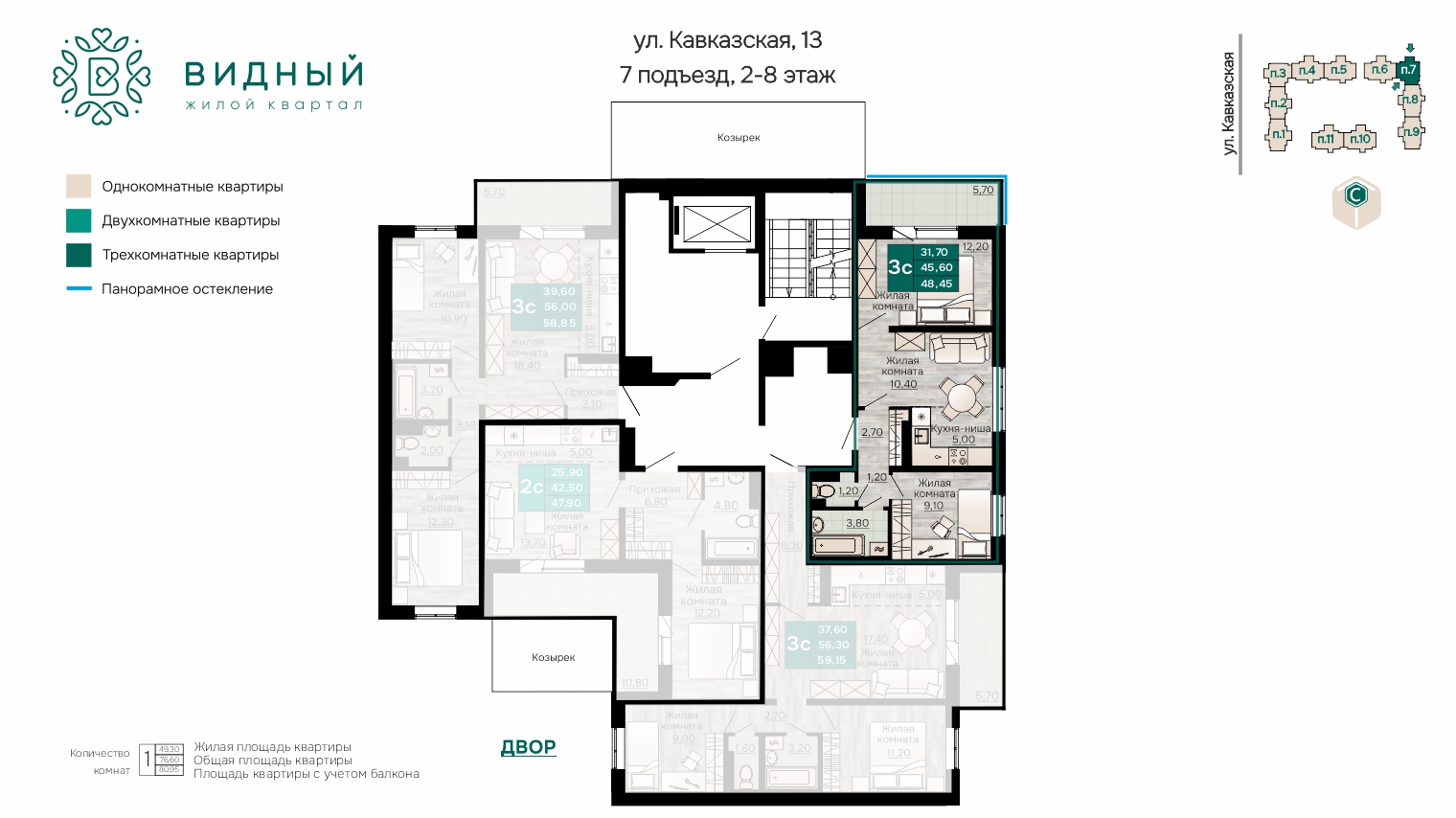 Евротрёхкомнатная Кавказская, 13, корпус 3, кв. 290