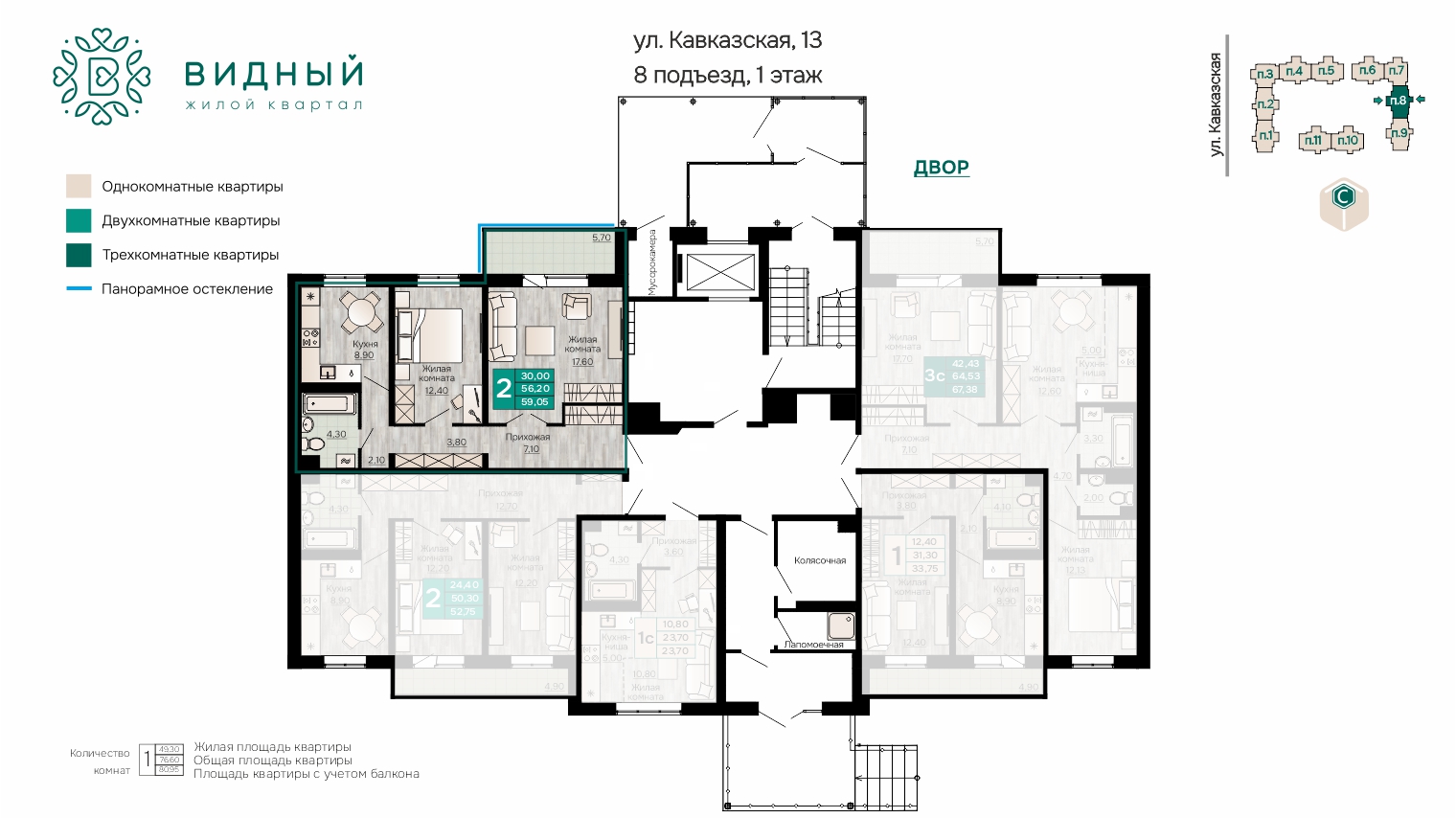Двухкомнатная Кавказская, 13, корпус 2, кв. 302