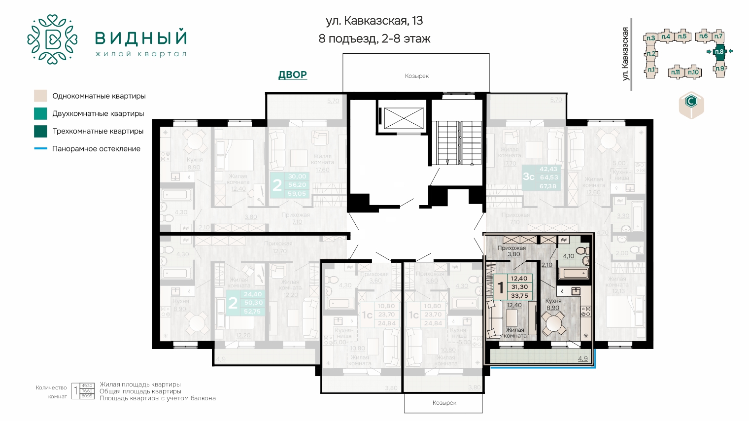 Однокомнатная Кавказская, 13, корпус 3, кв. 334