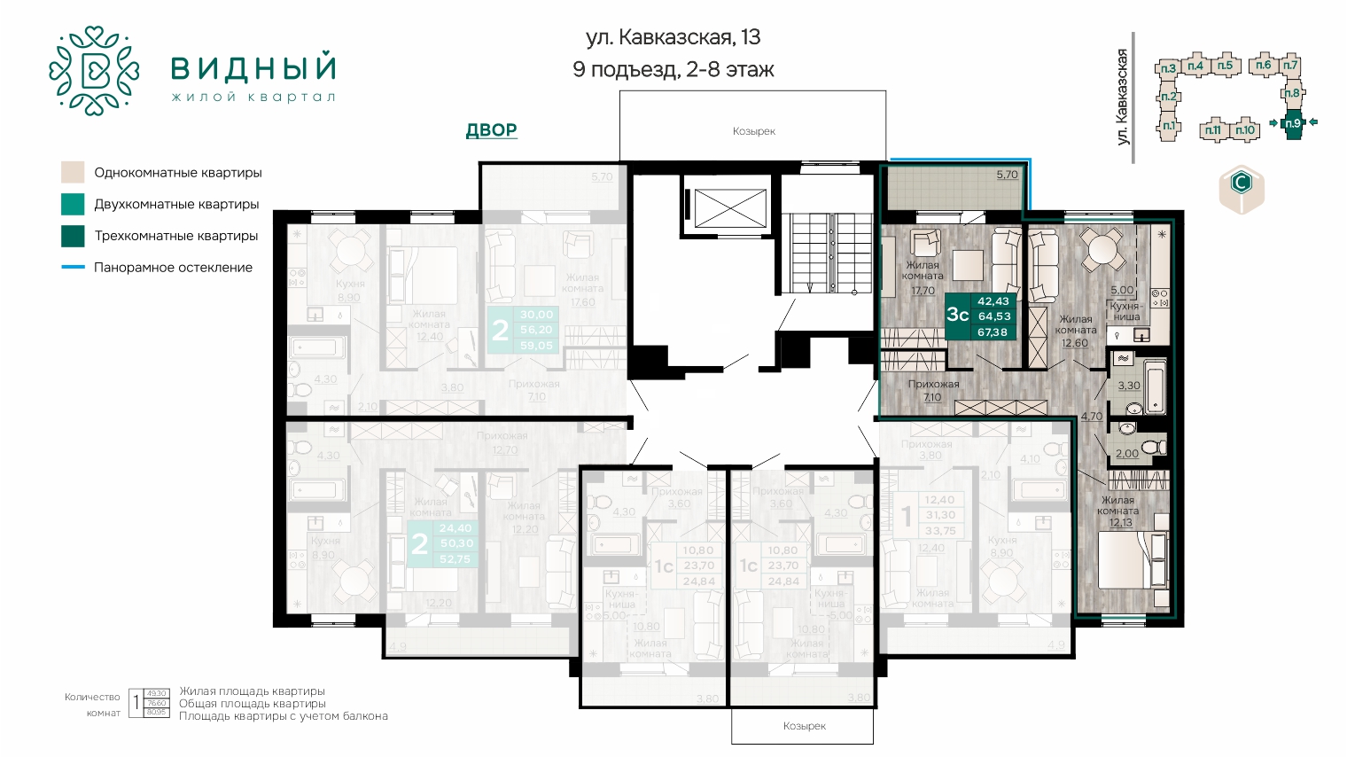 Евротрёхкомнатная Кавказская, 13, корпус 3, кв. 380