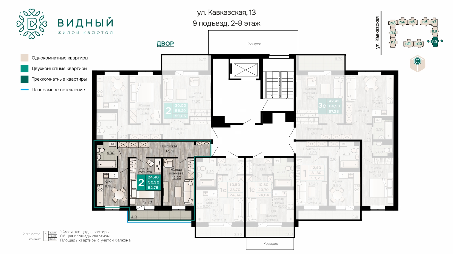 Двухкомнатная Кавказская, 13, корпус 3, кв. 390