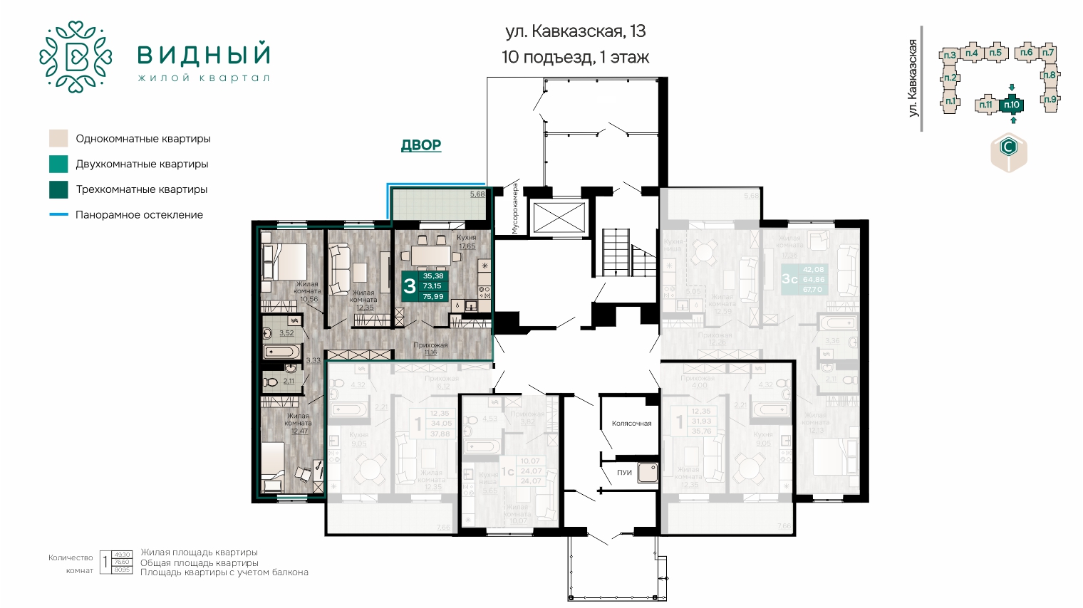 Трёхкомнатная Кавказская, 13, корпус 3, кв. 396