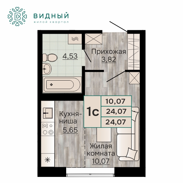 Студия Кавказская, 13, корпус 3 - Квартира №222
