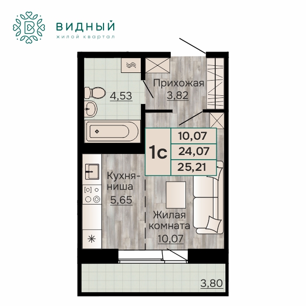 Комнат: Студия Этаж: 7 из 8