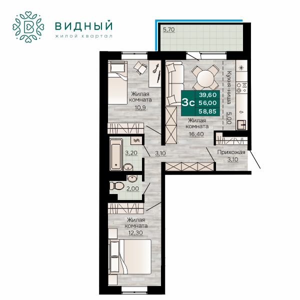 Квартира №258 Кавказская, 13, корпус 3