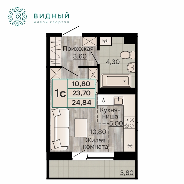 Студия Кавказская, 13, корпус 3 - Квартира №383