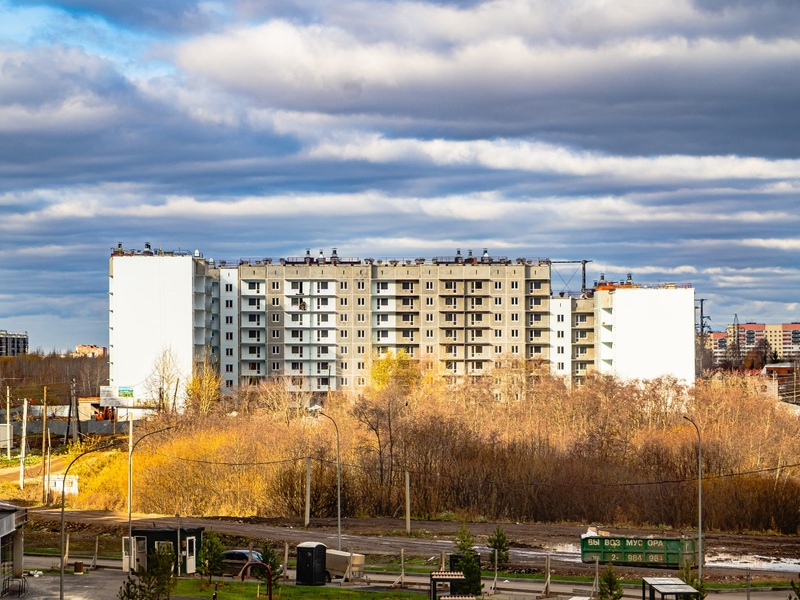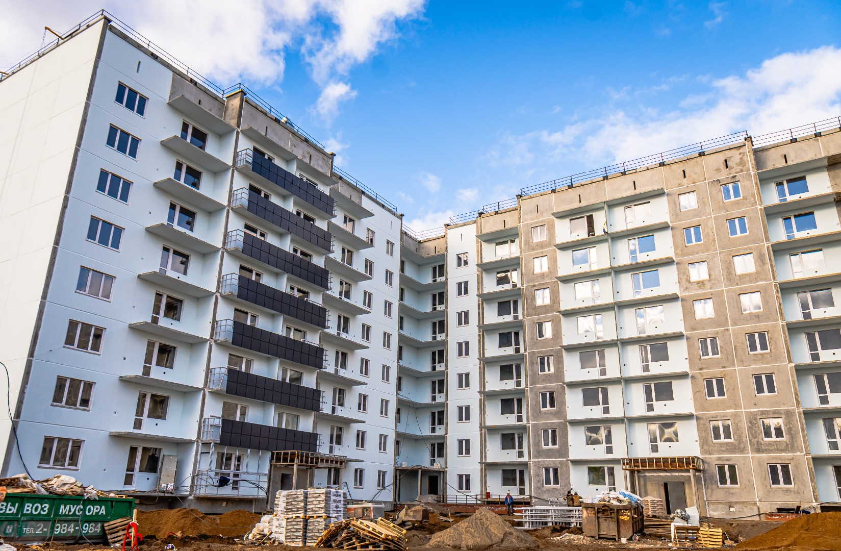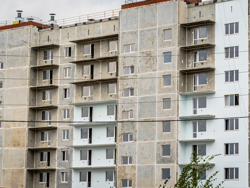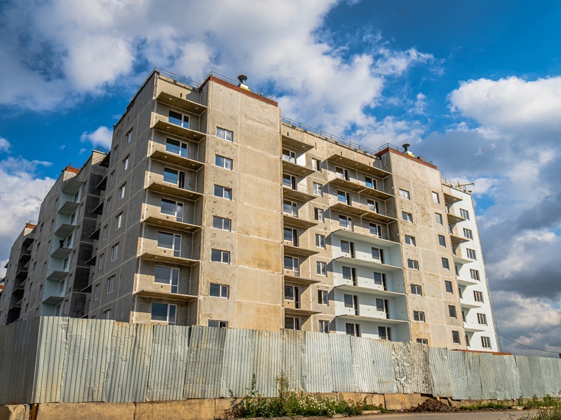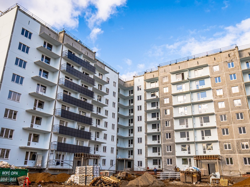 1-4 подъезды (8 этажей), 5-6 подъезды (6 этажей) – готовность 63%