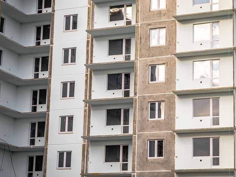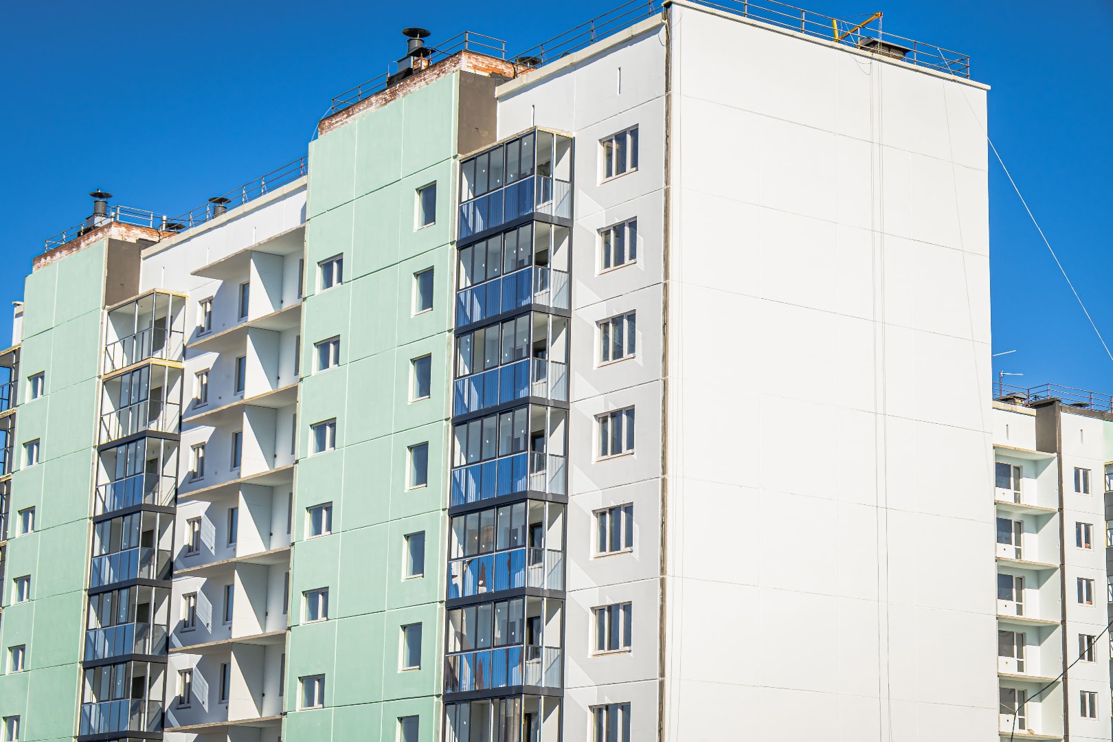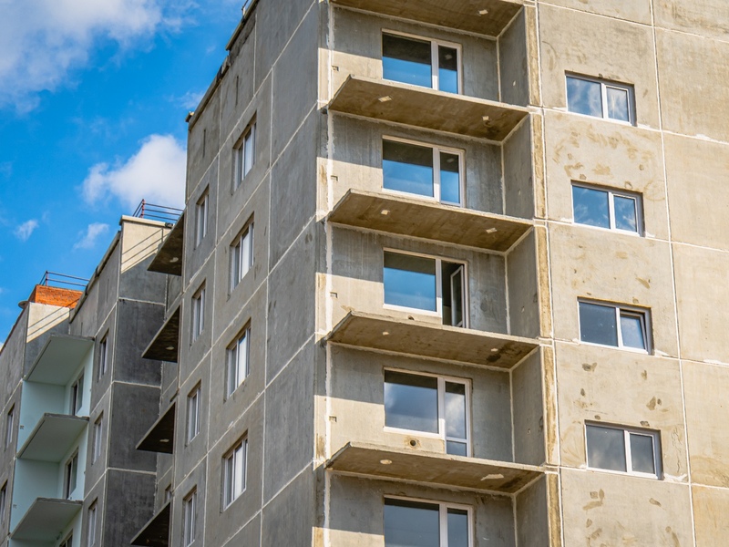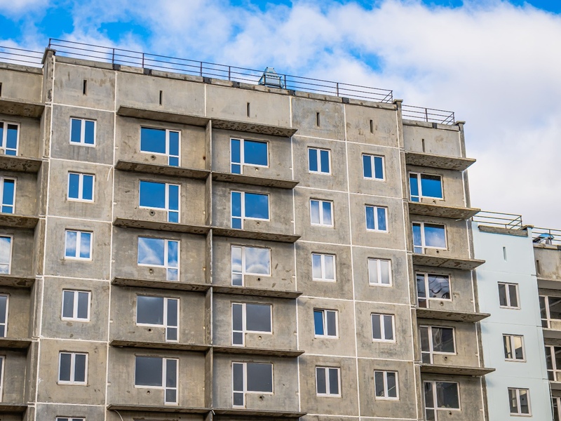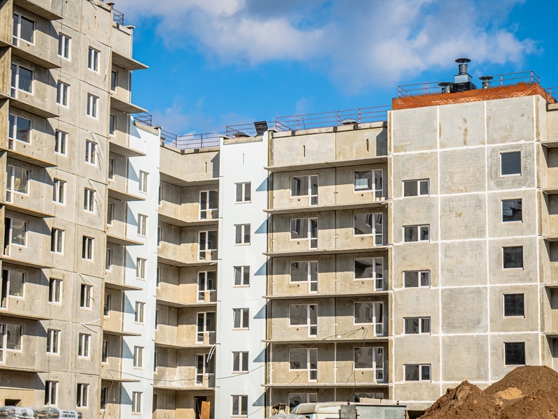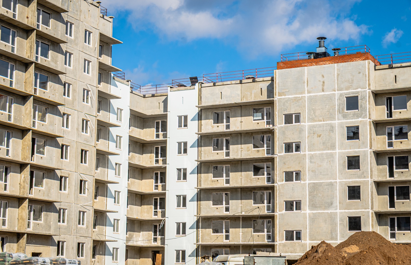 1-4 подъезды (8 этажей), 5-6 подъезды (6 этажей) – готовность 63%