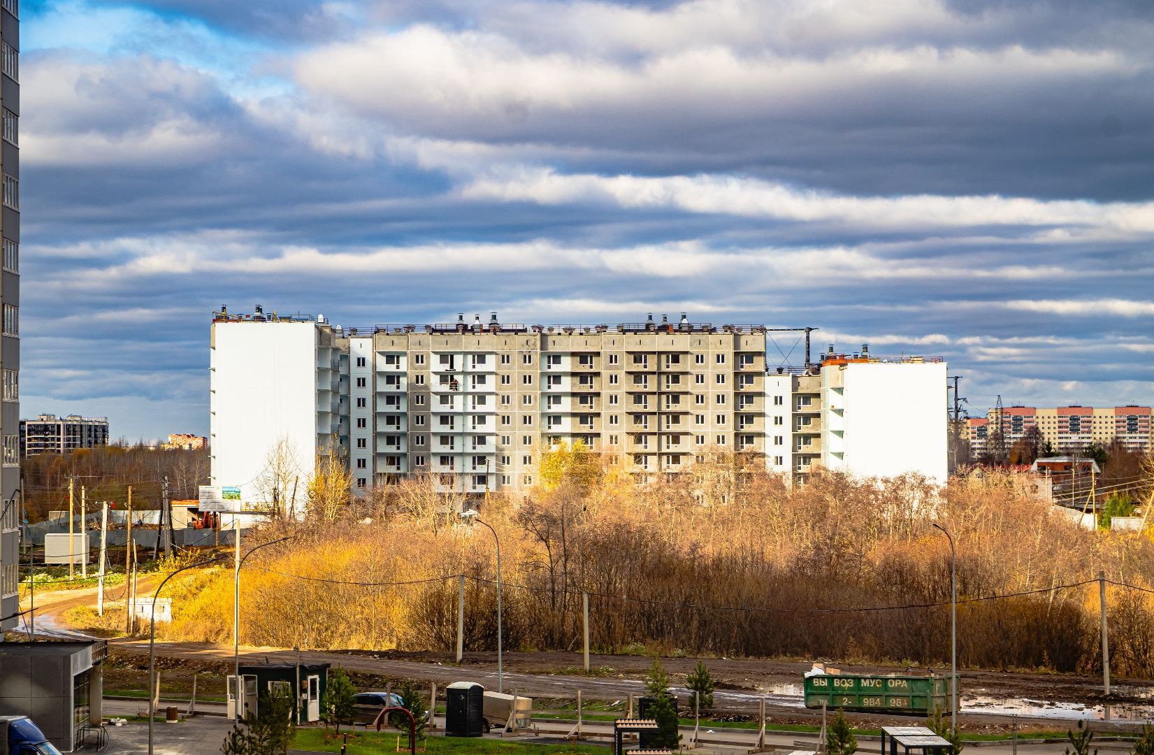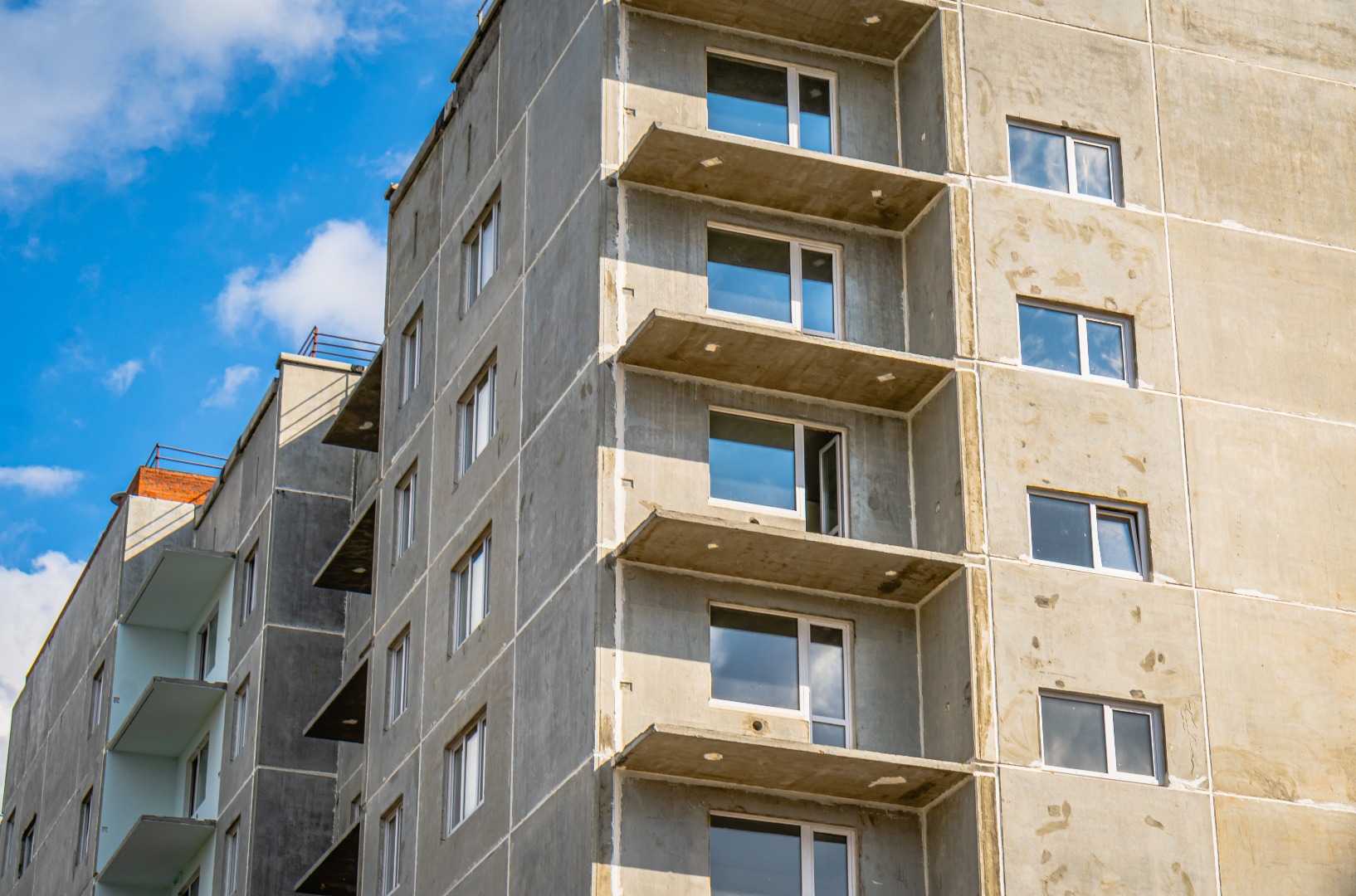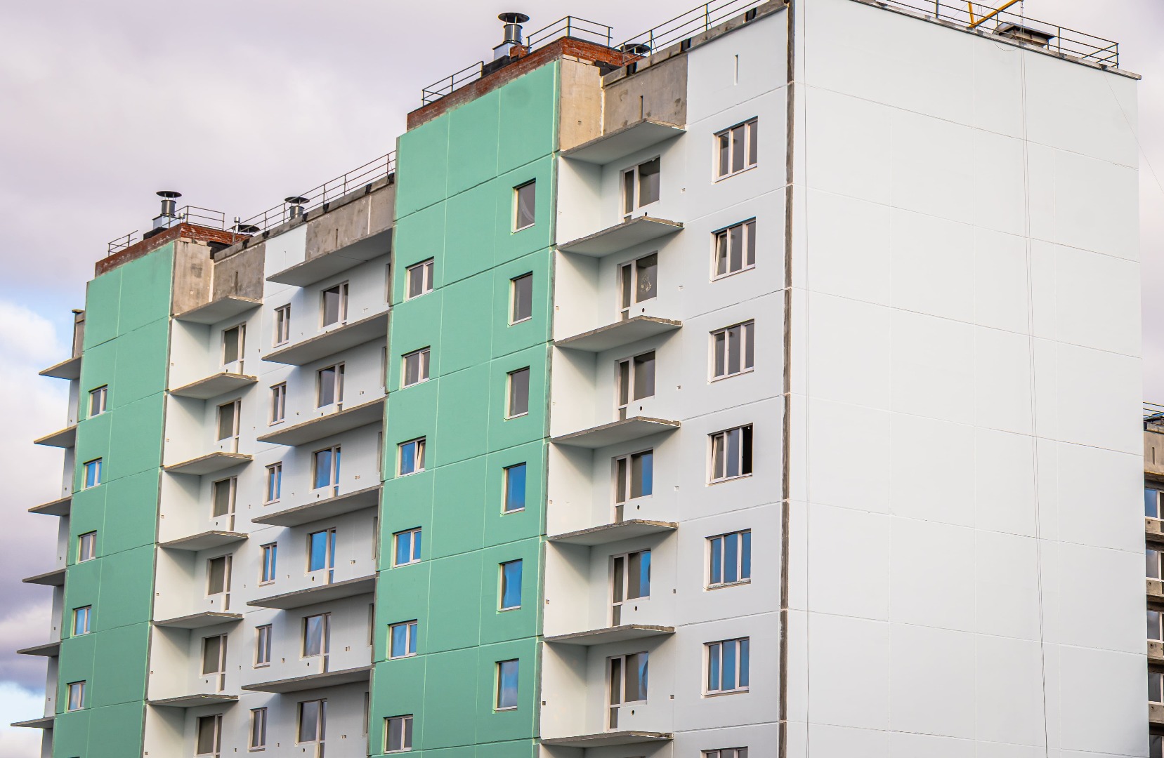 – Ведутся работы по монтажу холодного контура (балконов) в 1 и 2 подъездах.