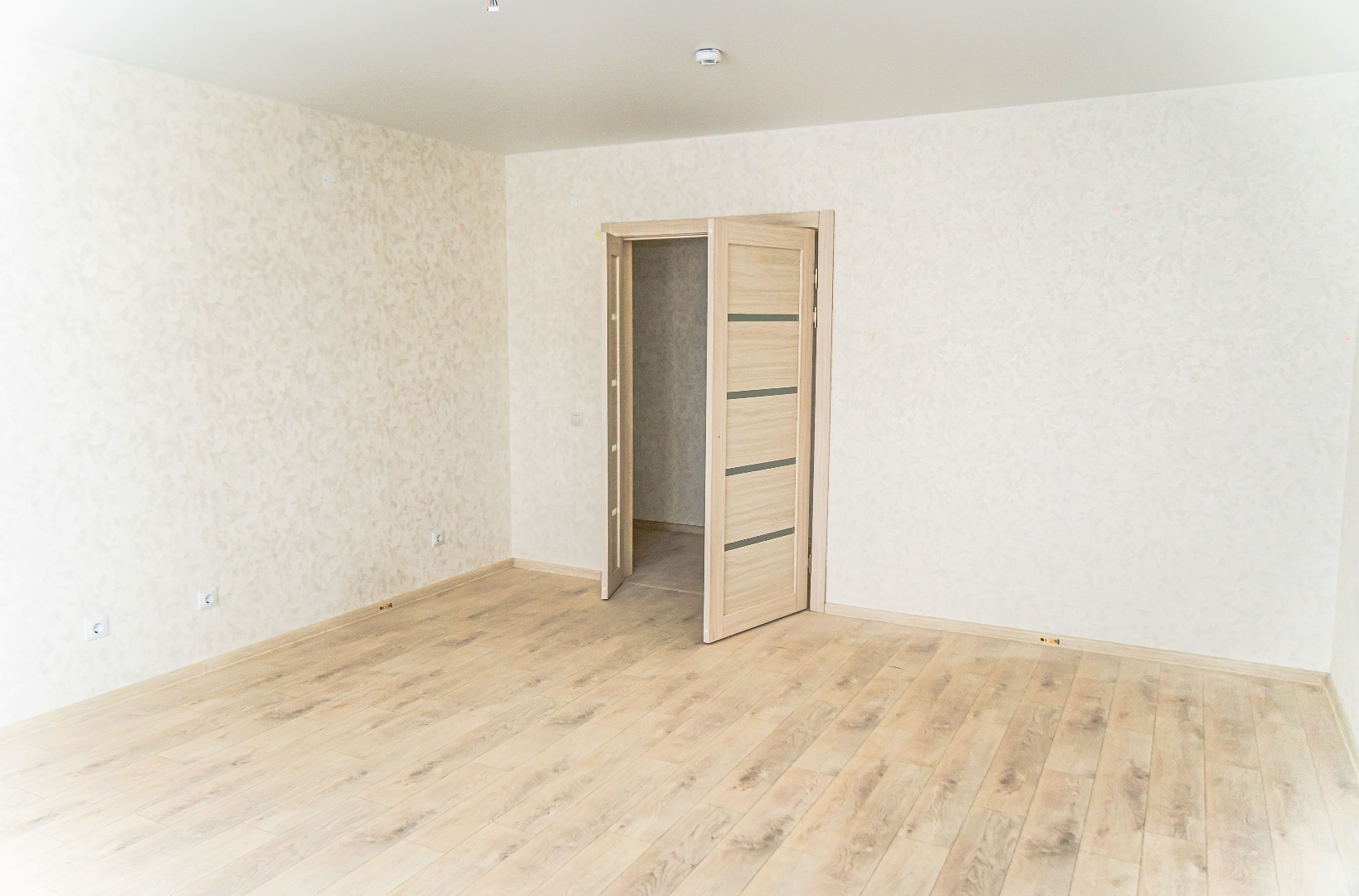 – Ведётся внутренняя отделка квартир: поклейка обоев, монтаж натяжных потолков