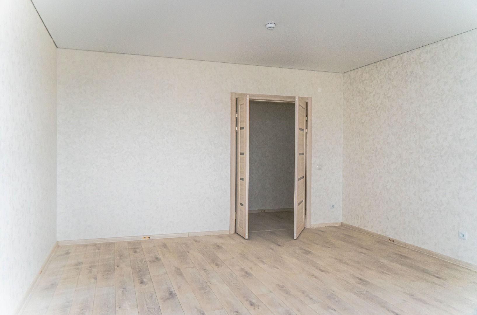 – Закончена внутренняя отделка квартир: поклейка обоев, монтаж натяжных потолков.