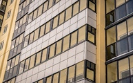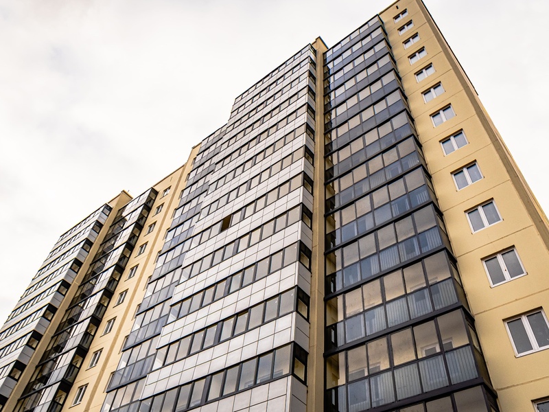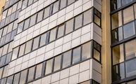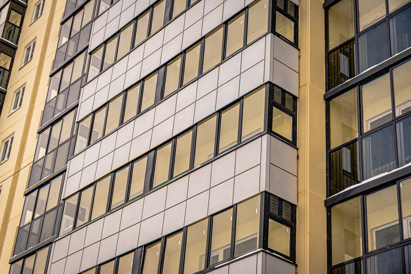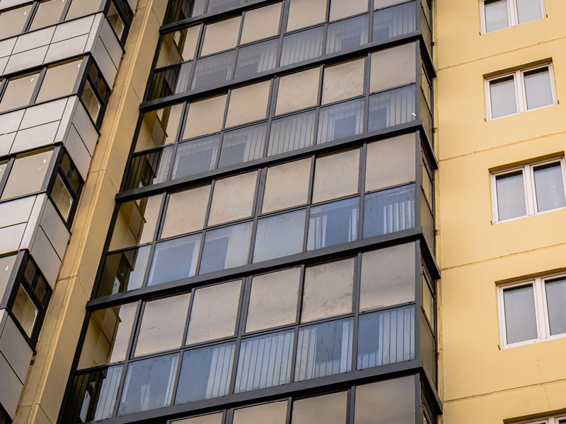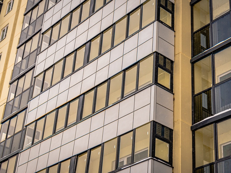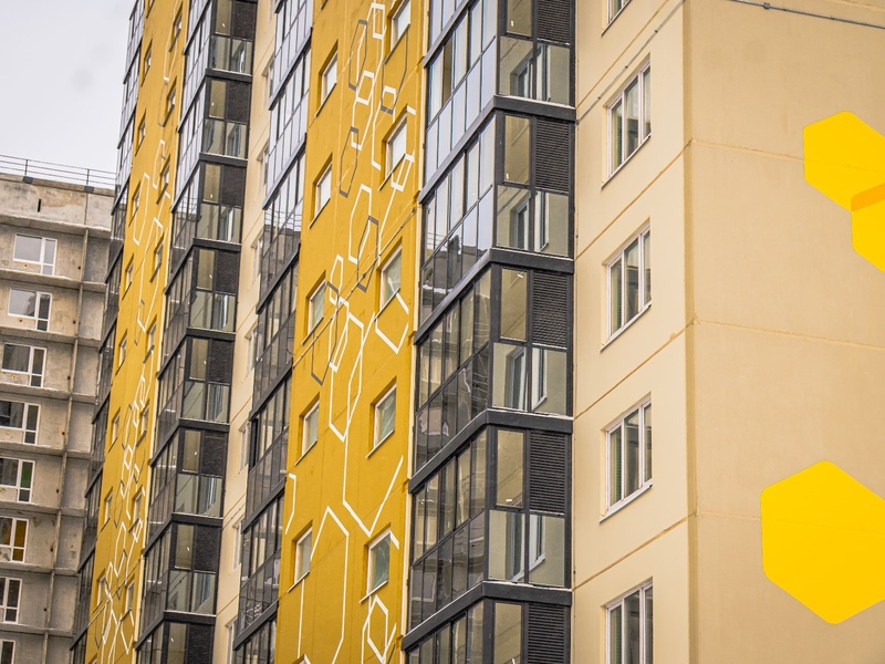 – Продолжаются работы по монтажу входных групп и установке витражей.