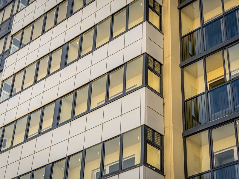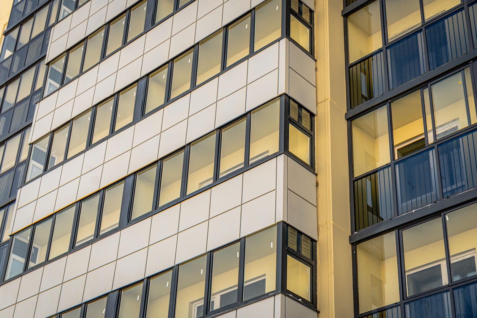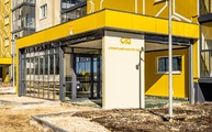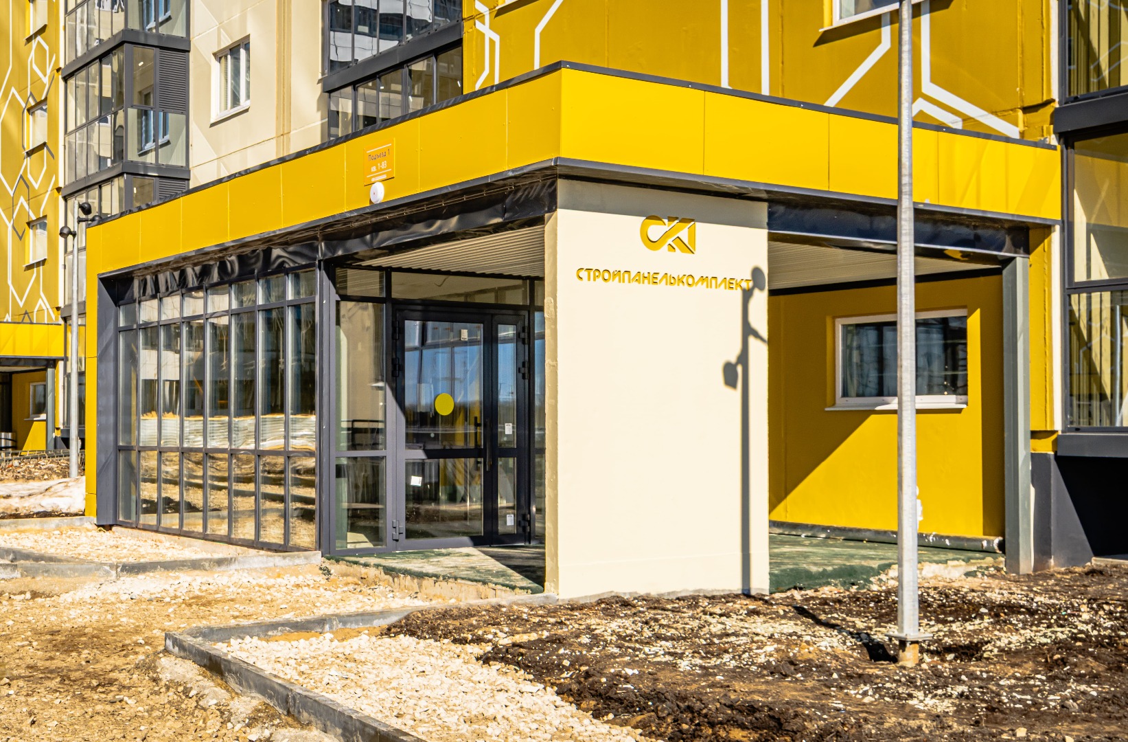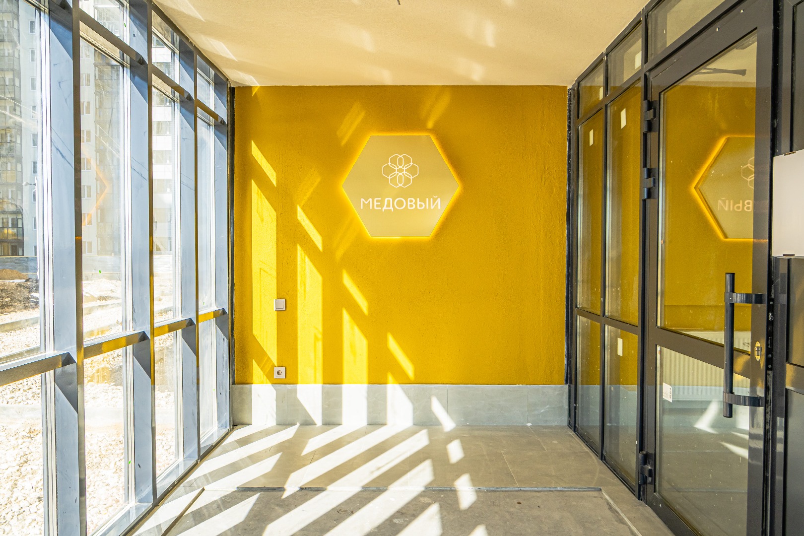 – Закончены работы по монтажу входных групп и установке витражей.