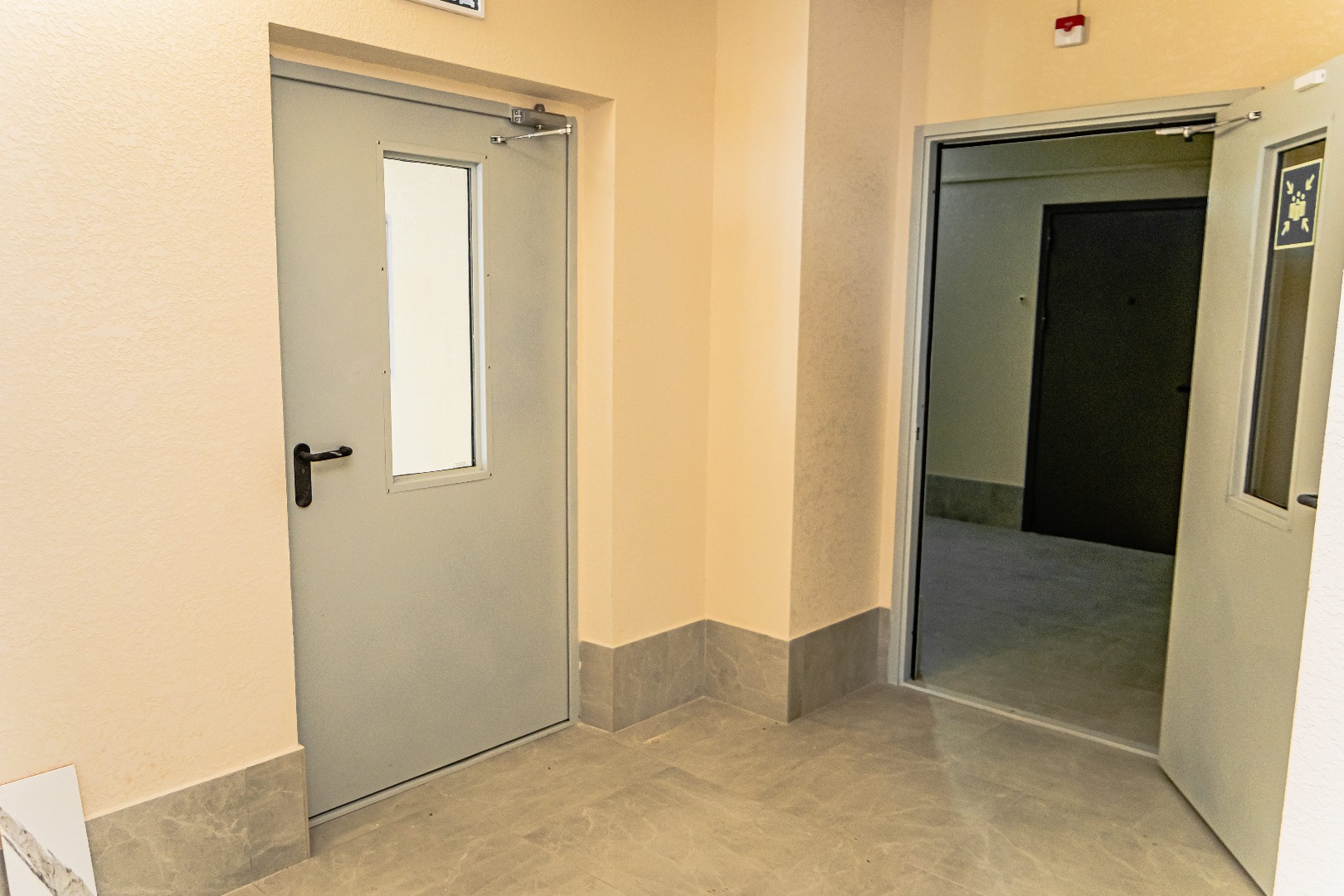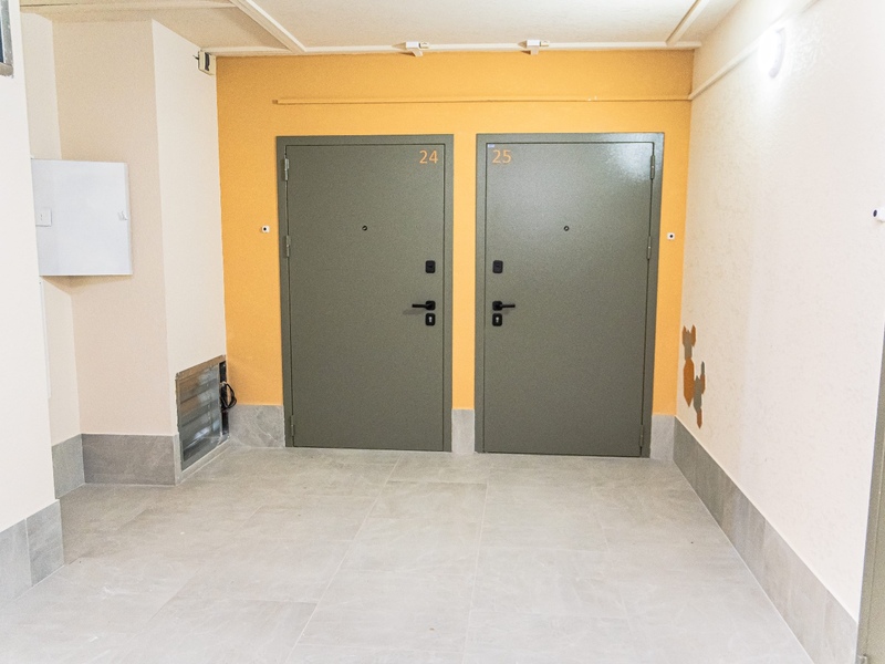 – Закончены работы по установке входных дверей в квартиры.