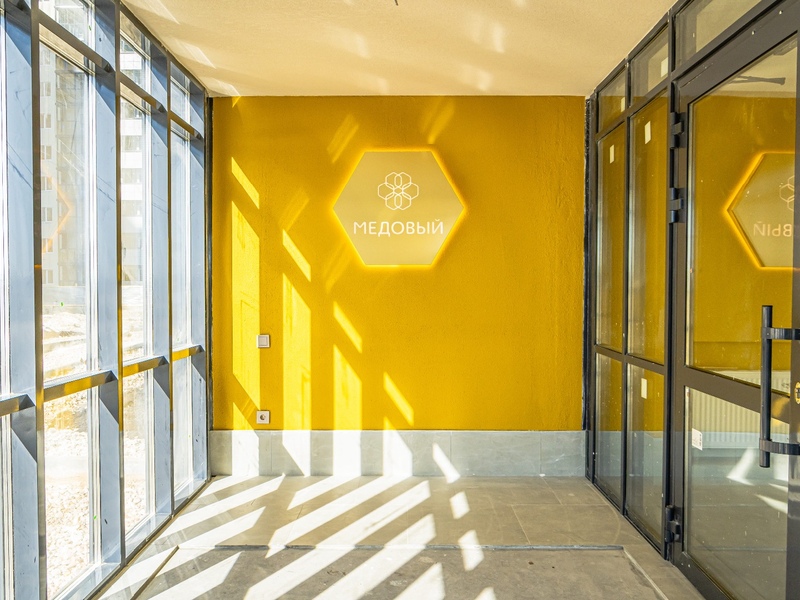 – Начались работы по монтажу входных групп и установке витражей.