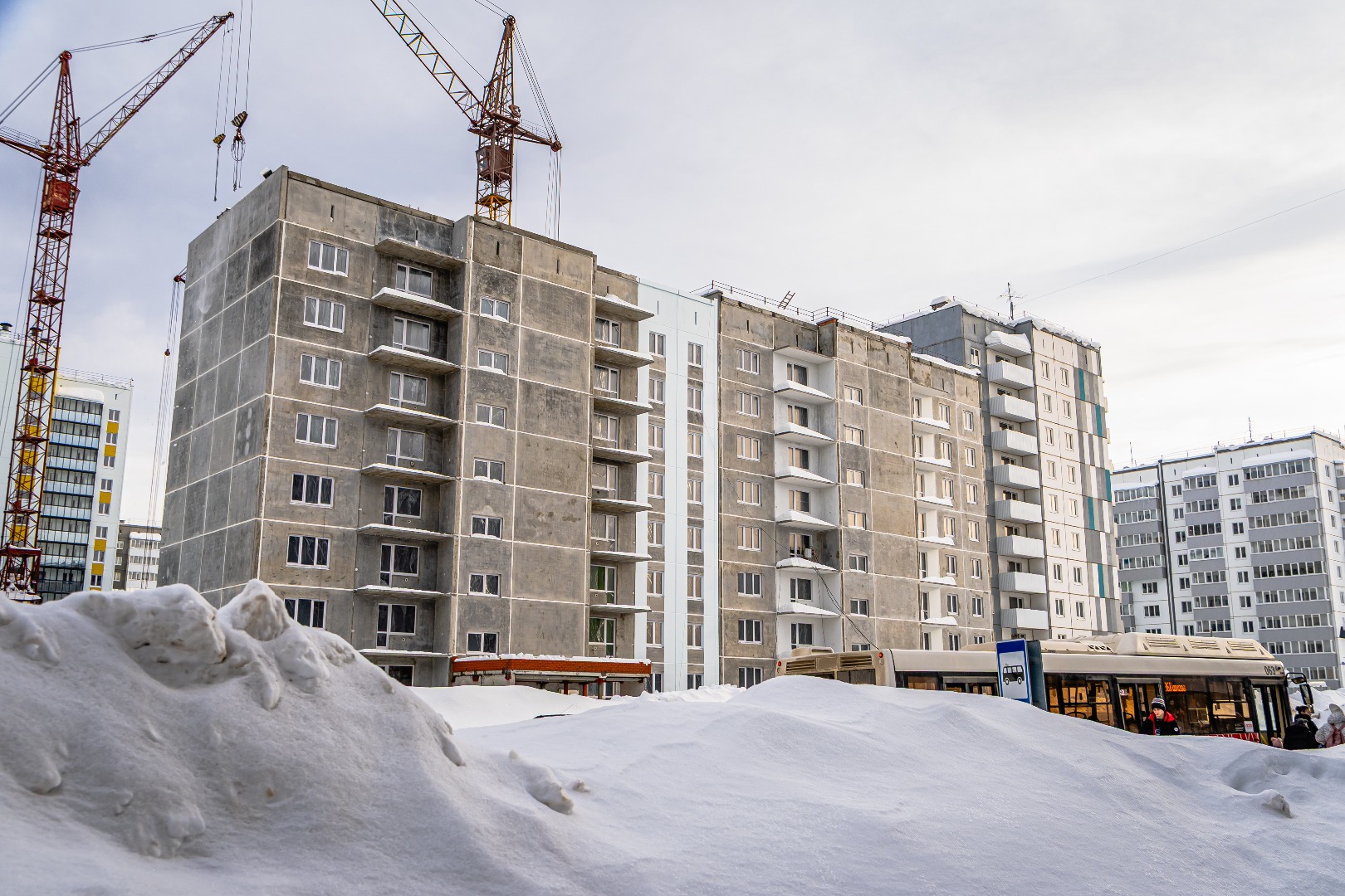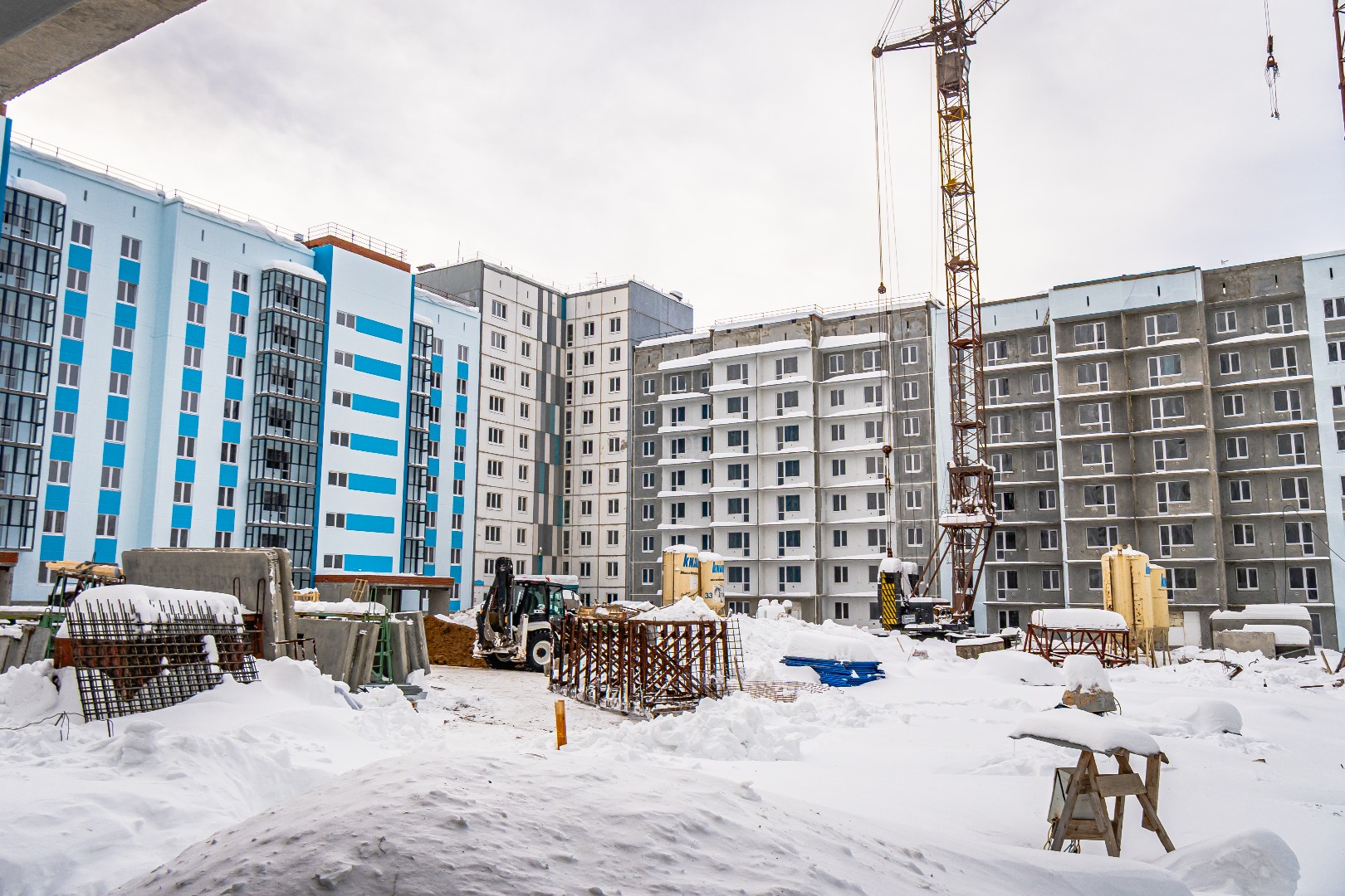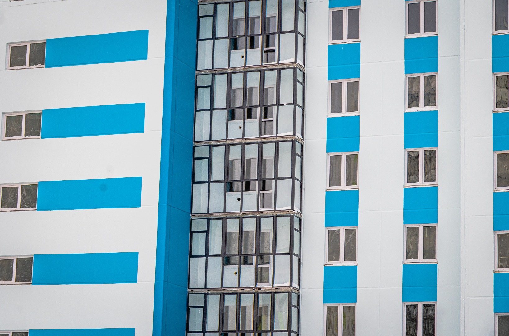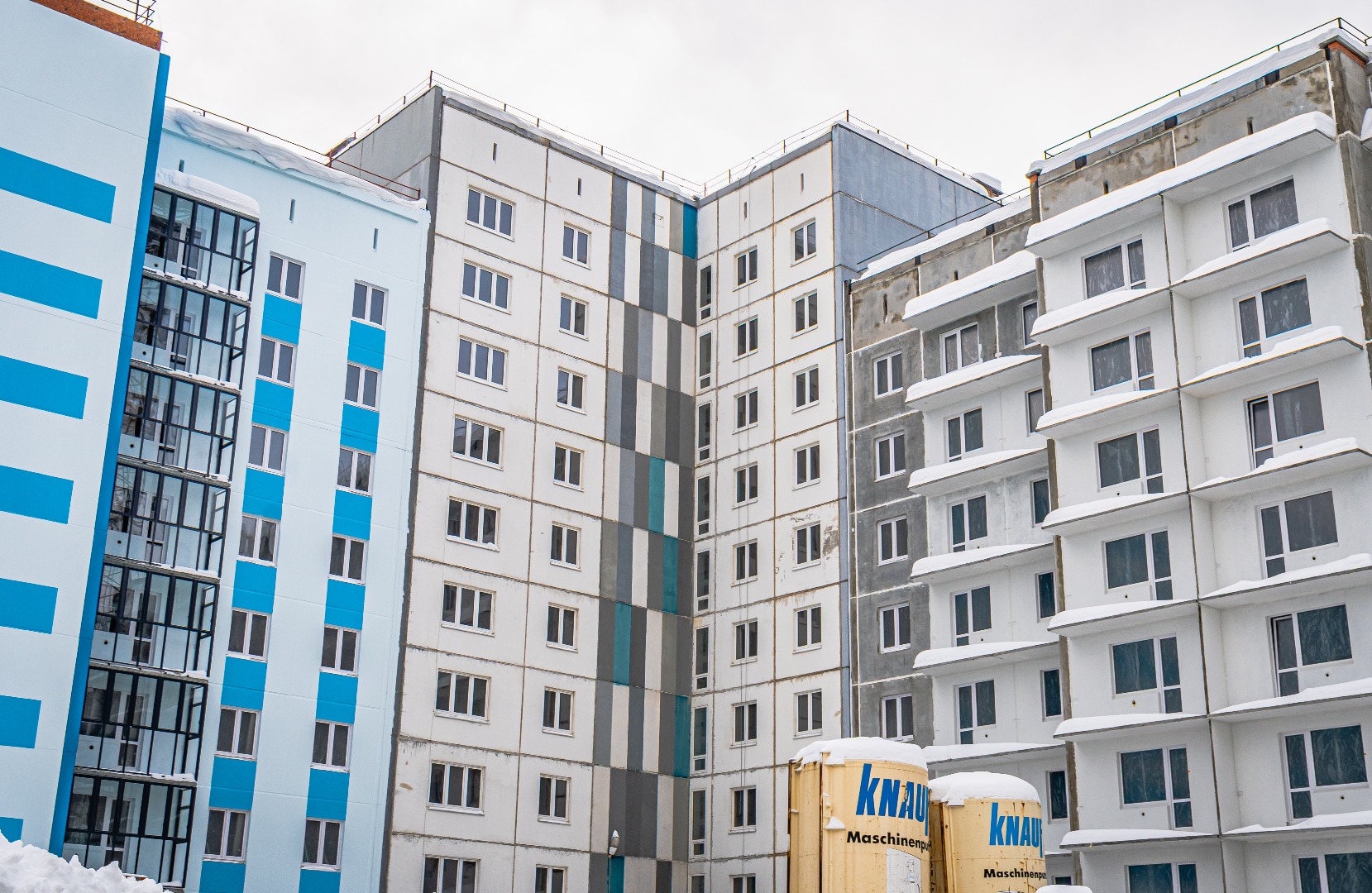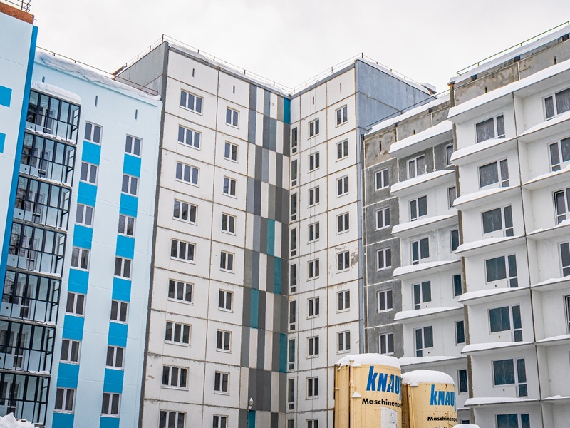 – Идут работы по герметизации швов стеновых панелей.