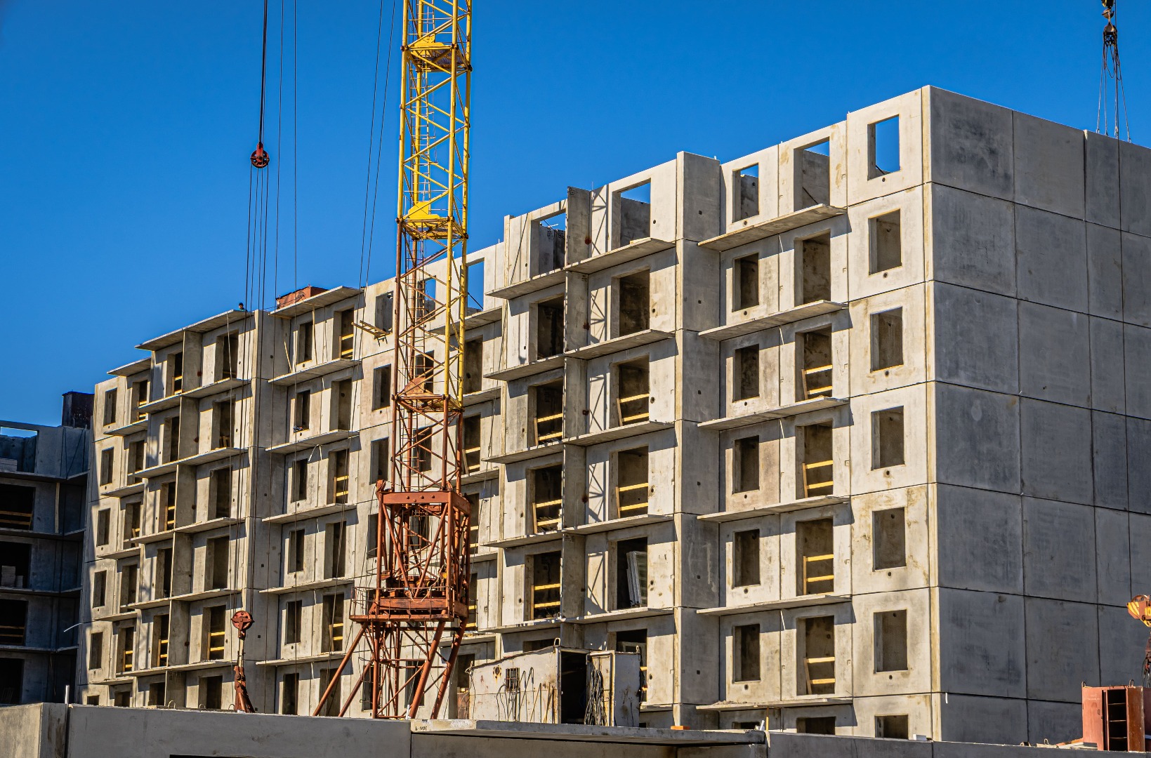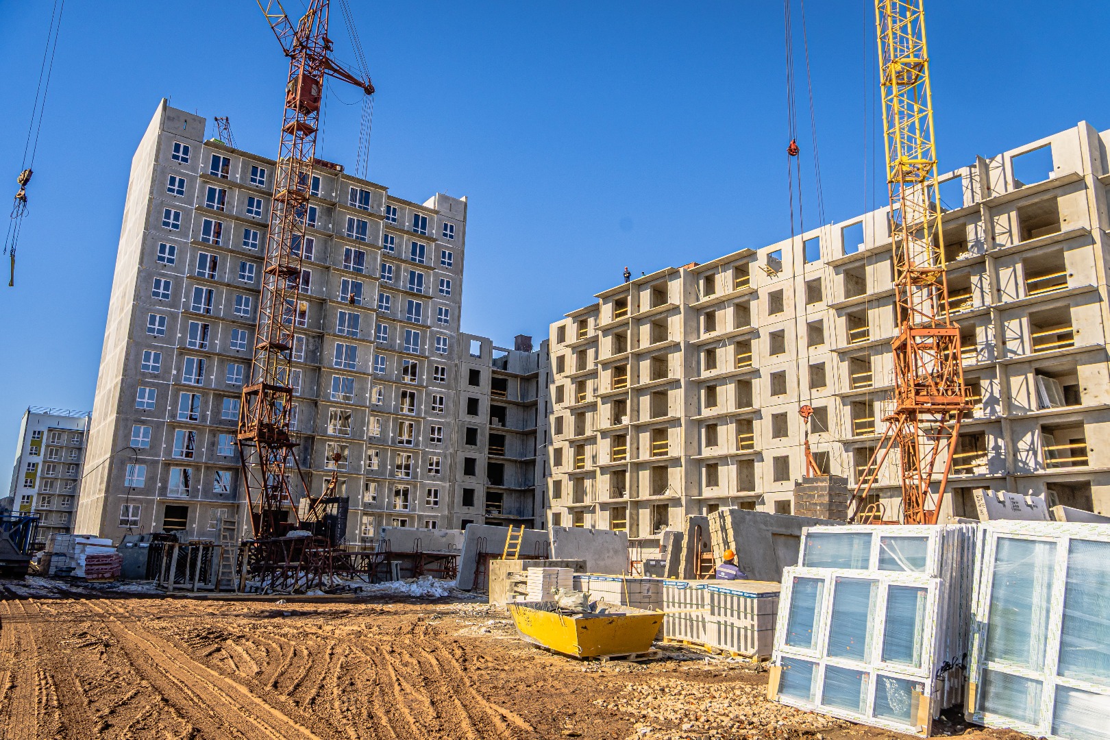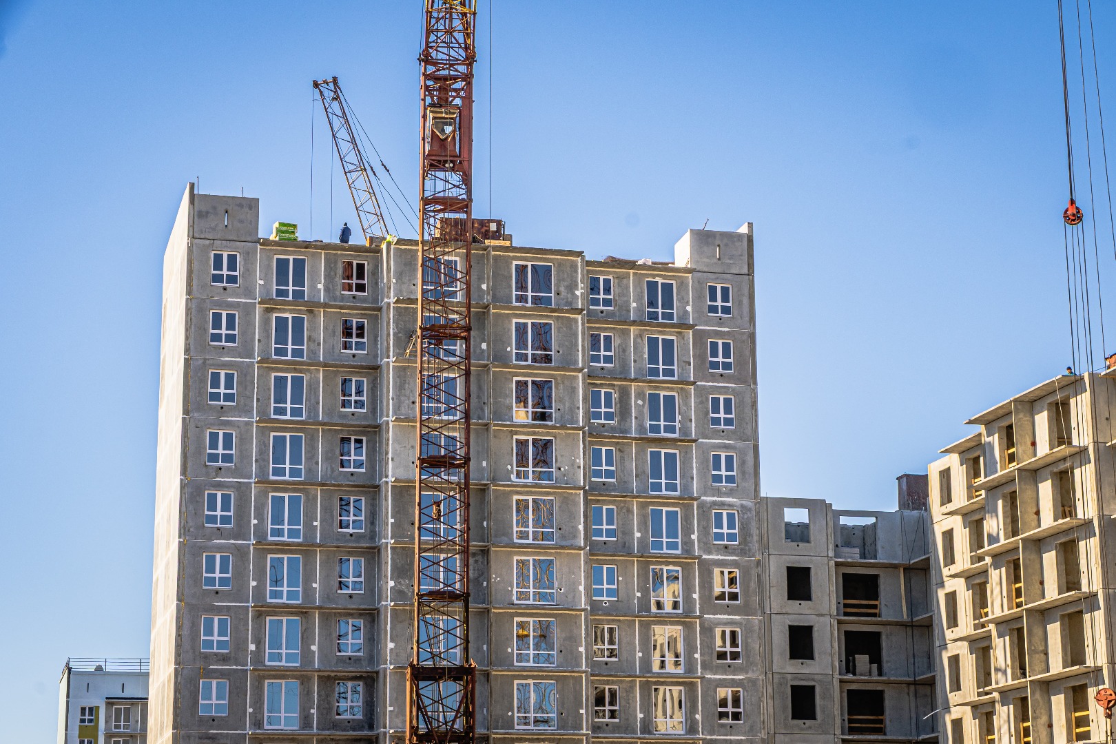 2, 3, и 4 подъезды: идут работы по монтажу 6 этажа.