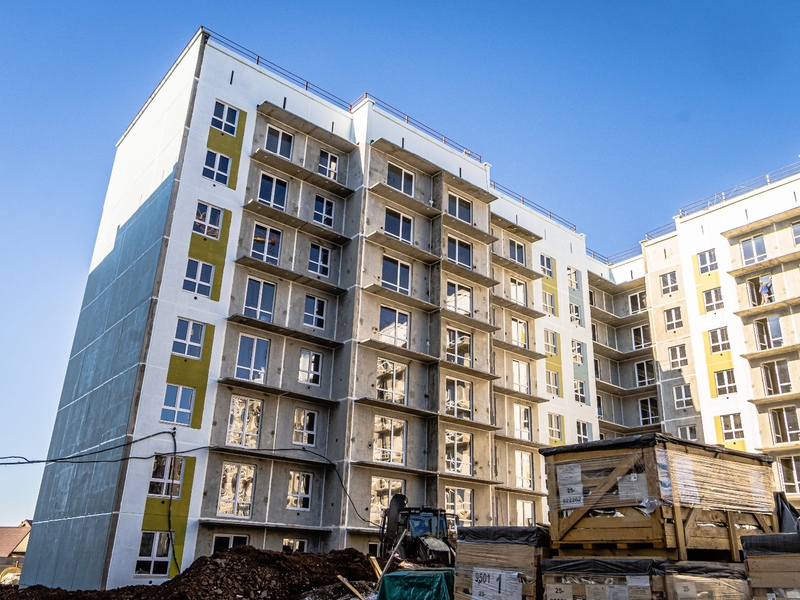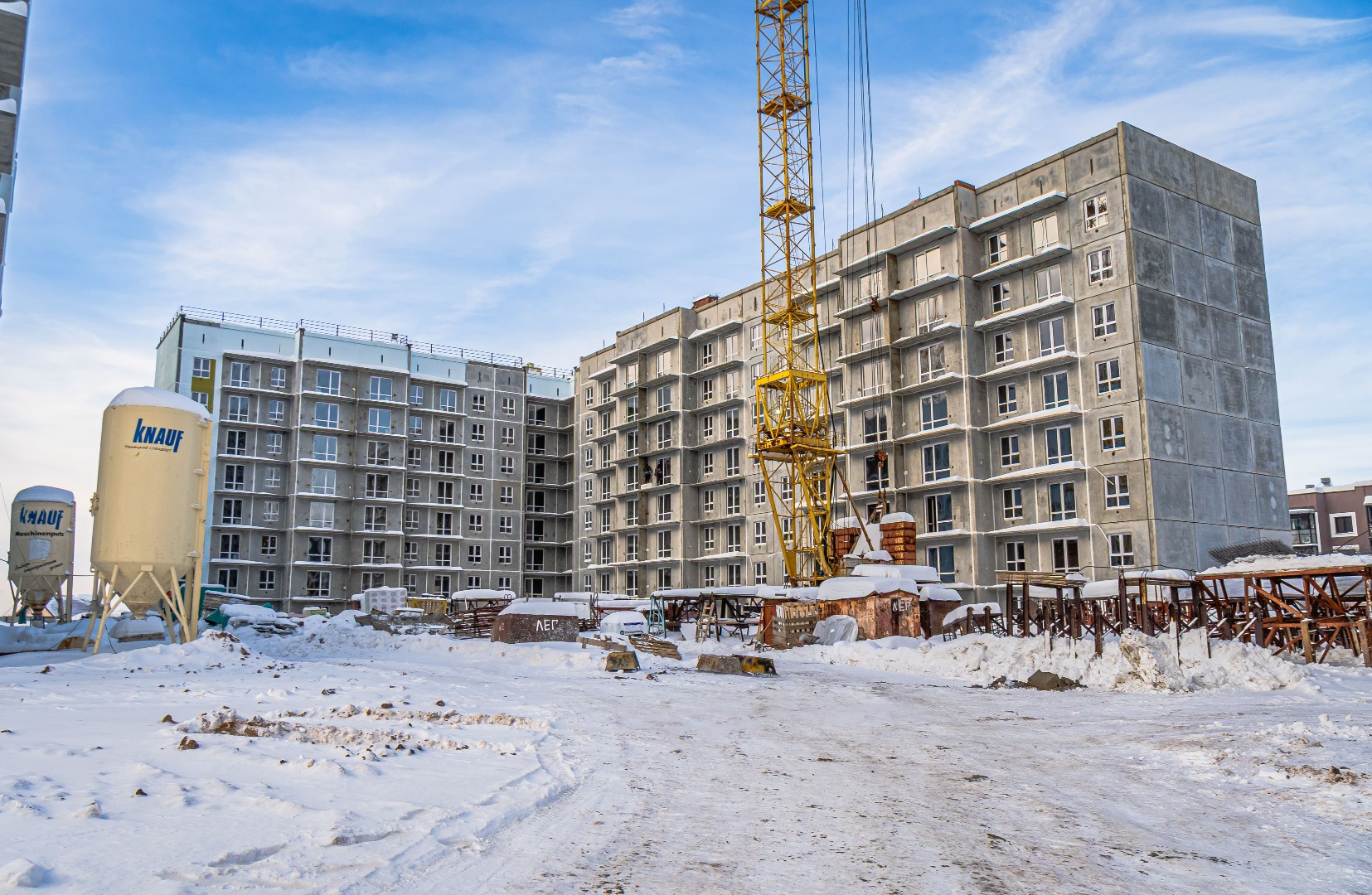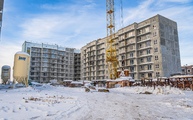 1 подъезд: готовы 8 этажей, продолжается монтаж перегородок, приступили к монтажу окон, системы отопления и электроснабжения.