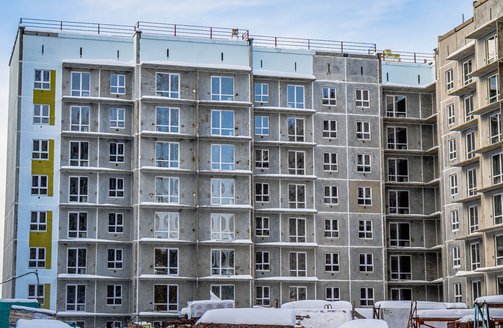 3 подъезд: готовы 7 этажей.