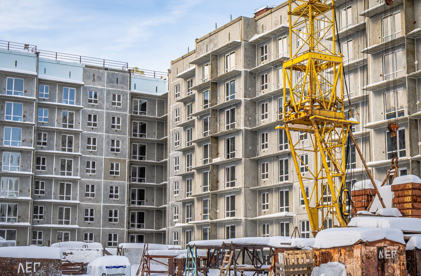 3 подъезд: готовы 5 этажей.