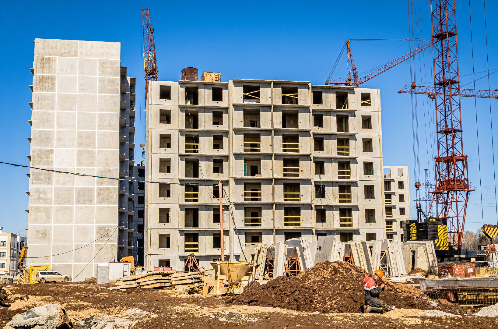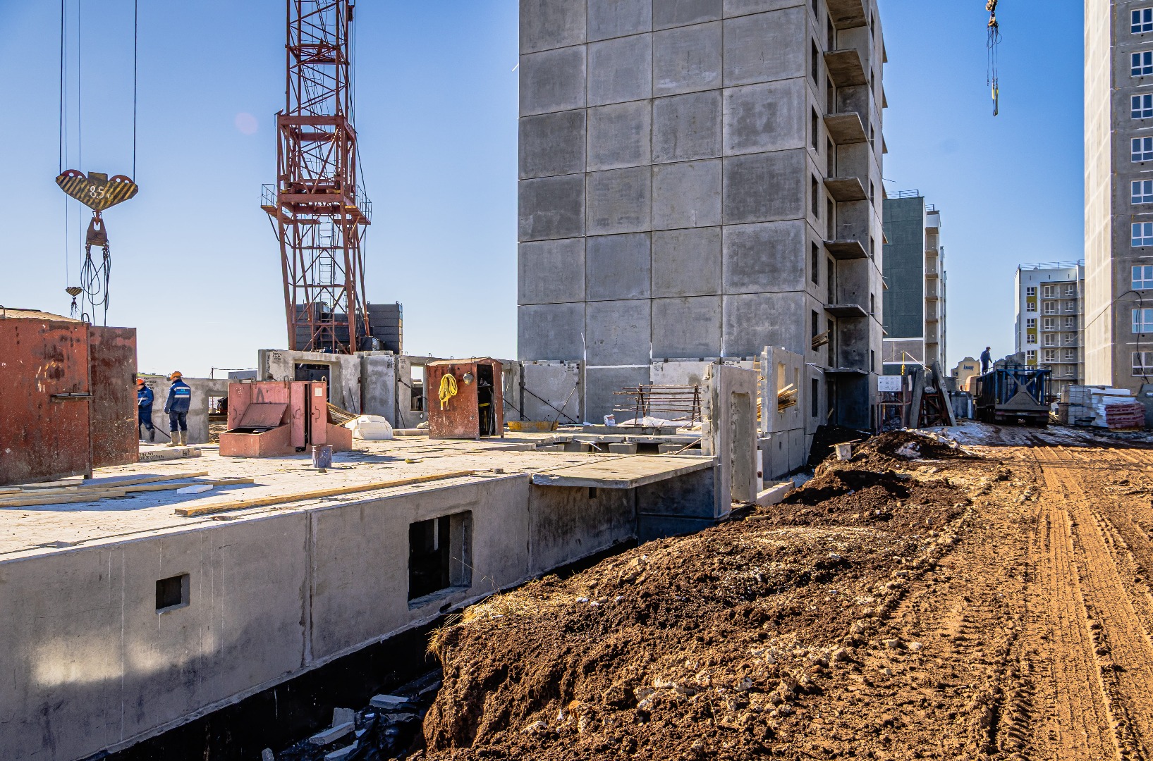 В 2 и 3 подъезде идут работы по монтажу фундамента.