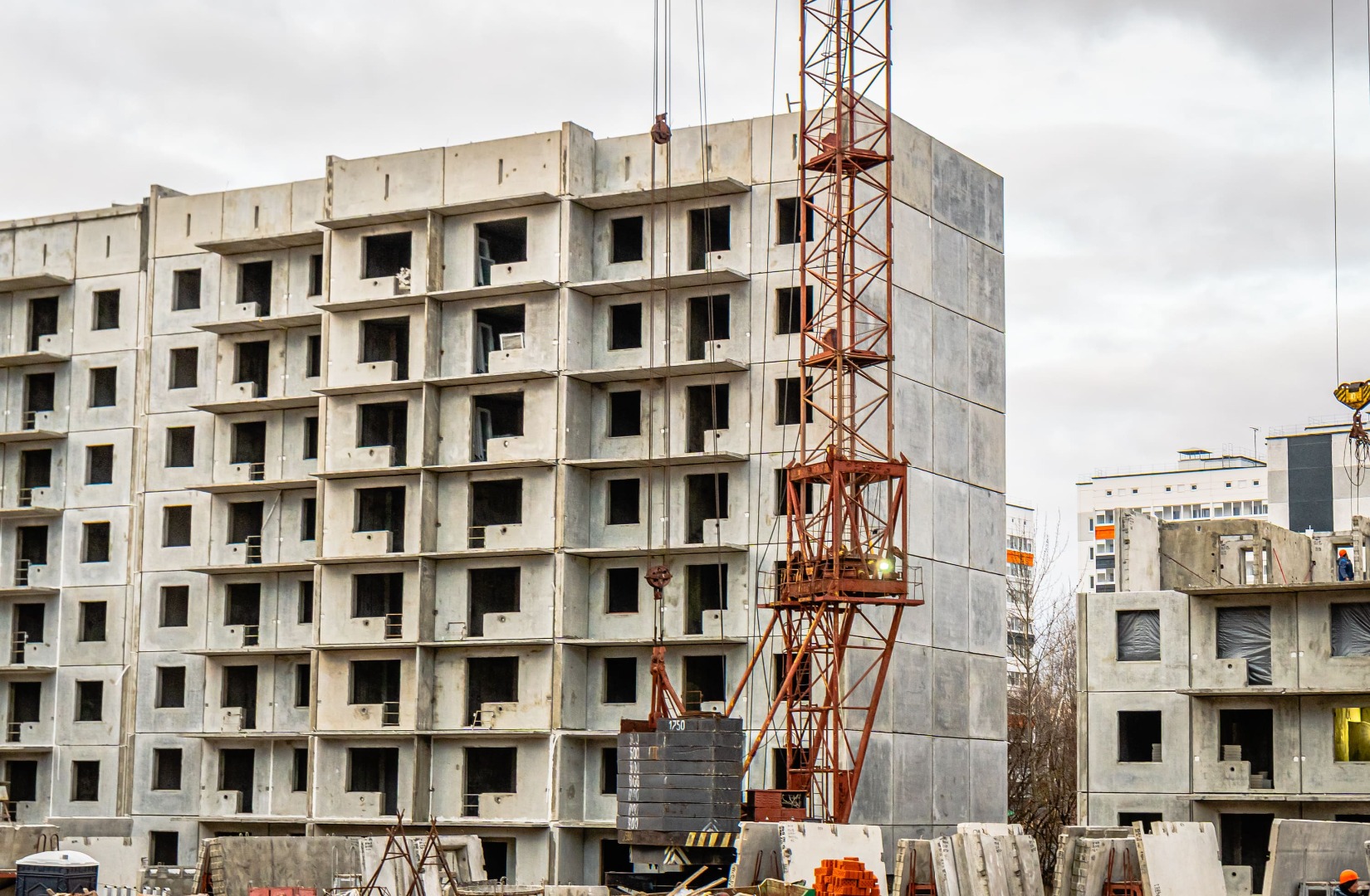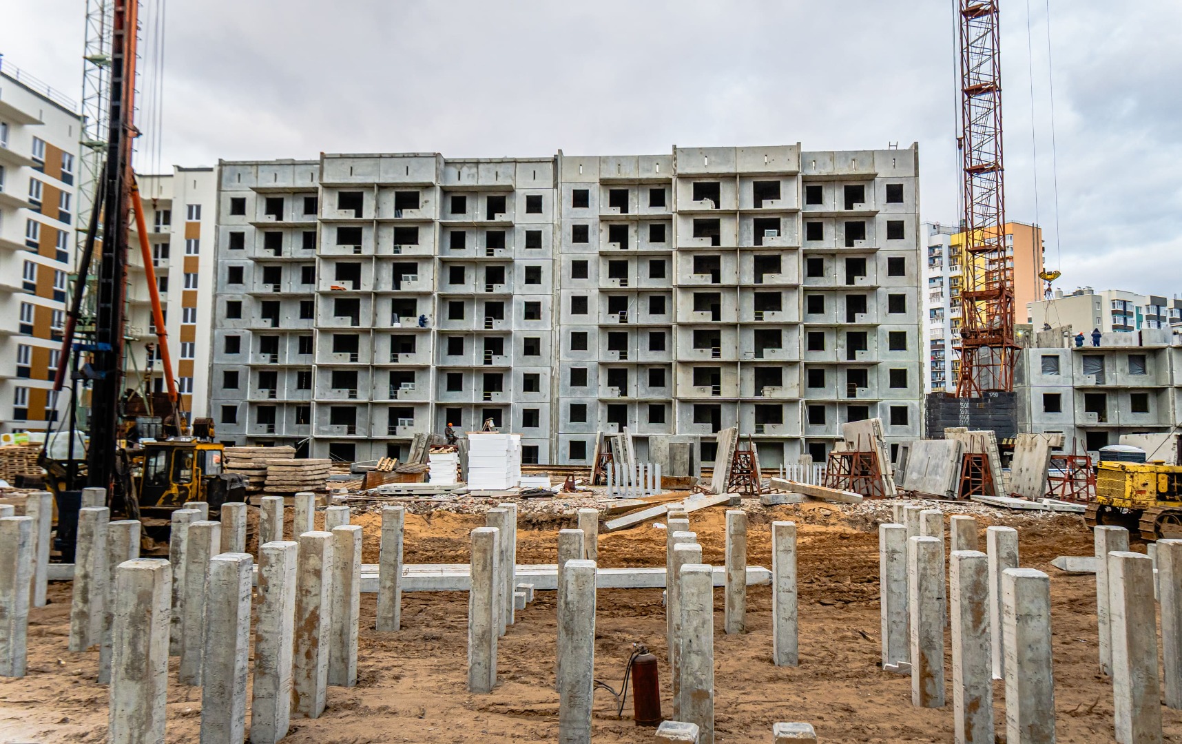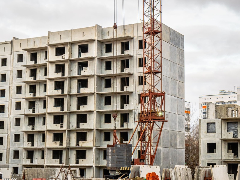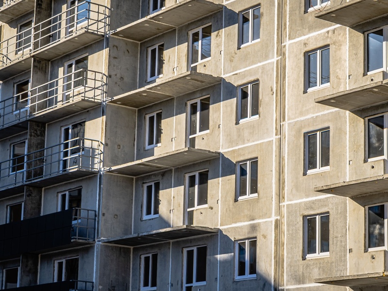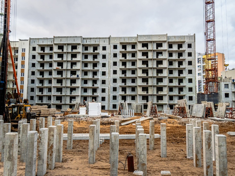 1 и 2 подъезды — полностью возведены (8 этажей)