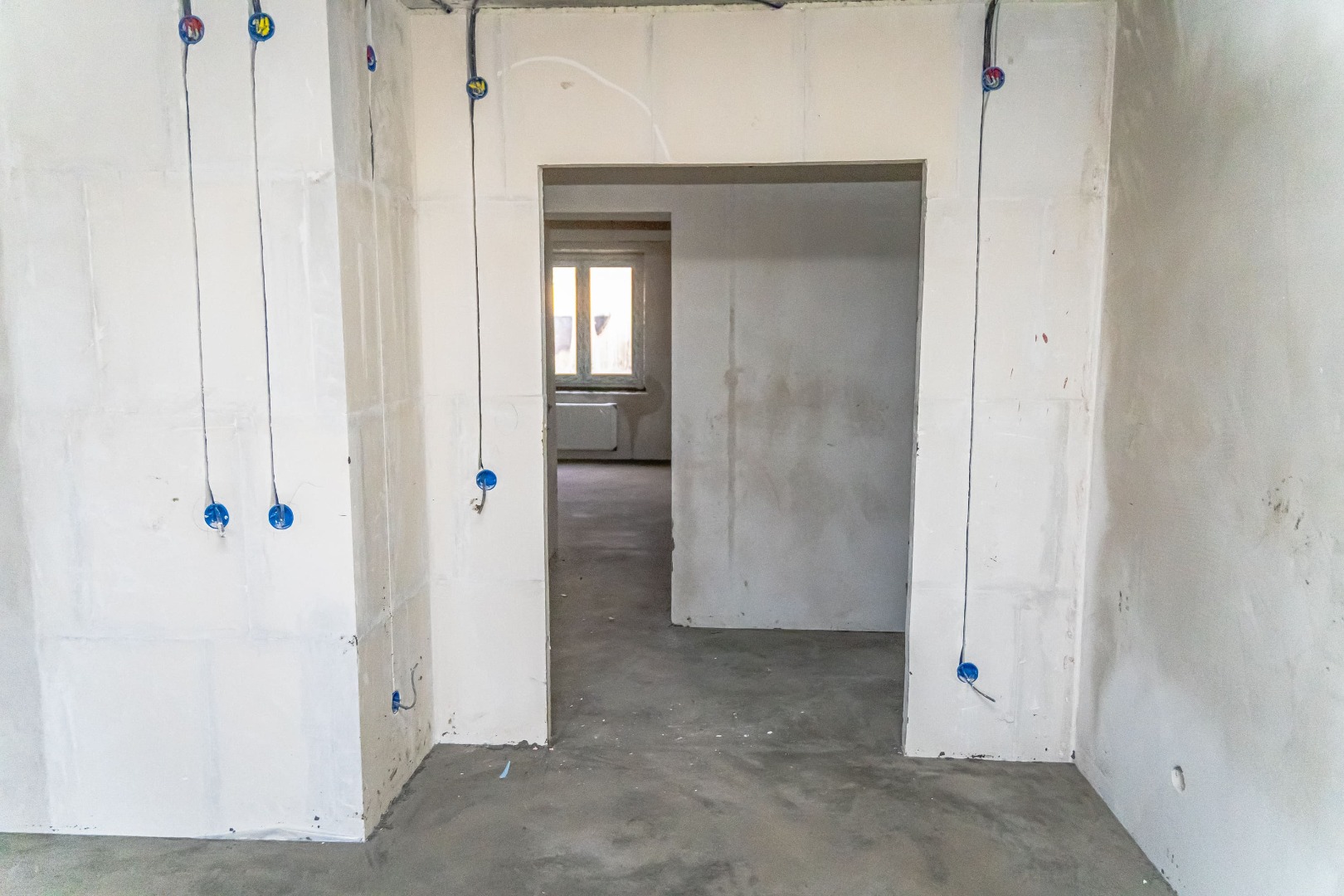 - Продолжаются отделочные работы: оштукатуривание стен.
